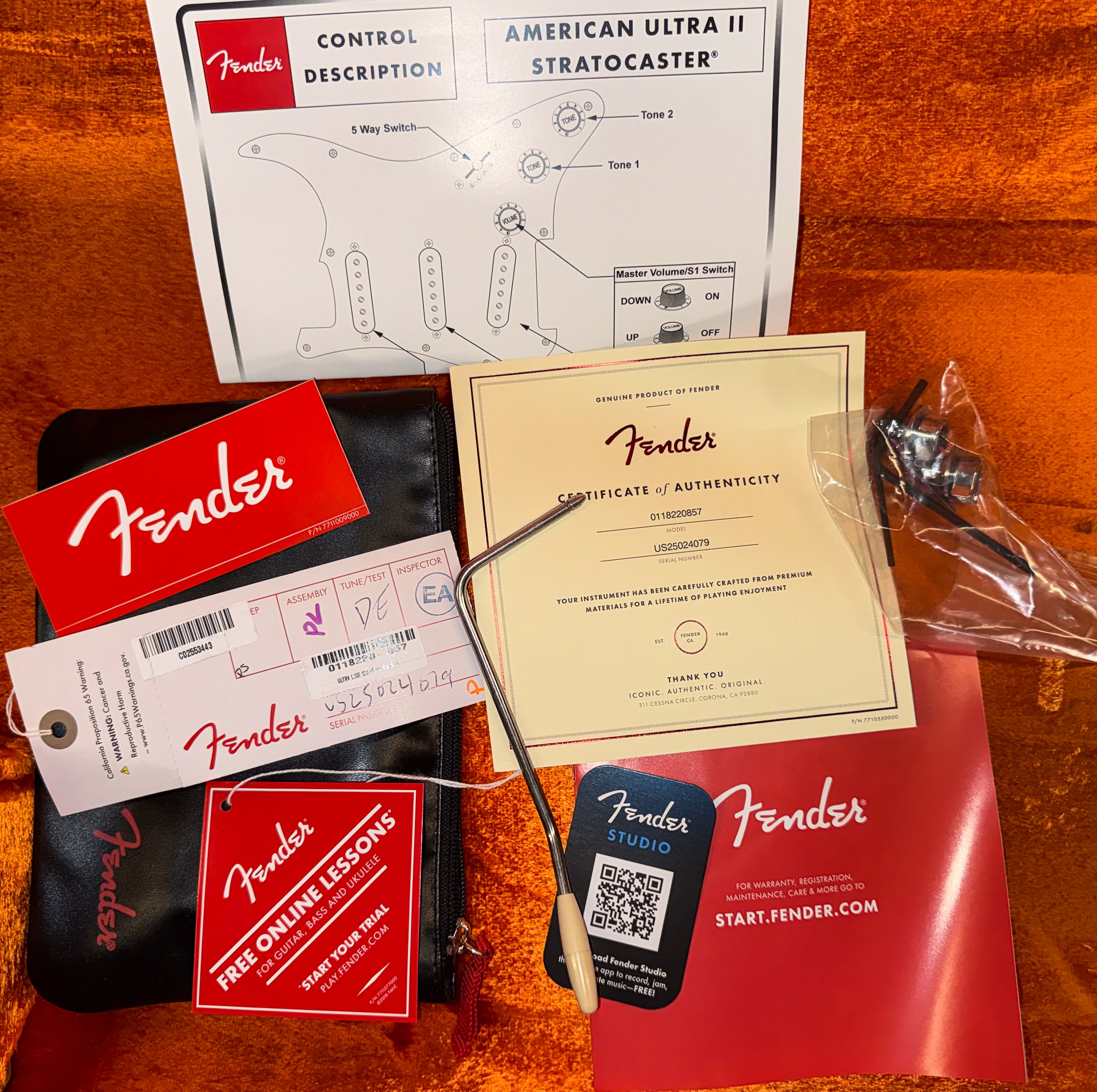 Strings: Fender® USA 250L Nickel Plated Steel (.009–.042 Gauges), PN 0730250403