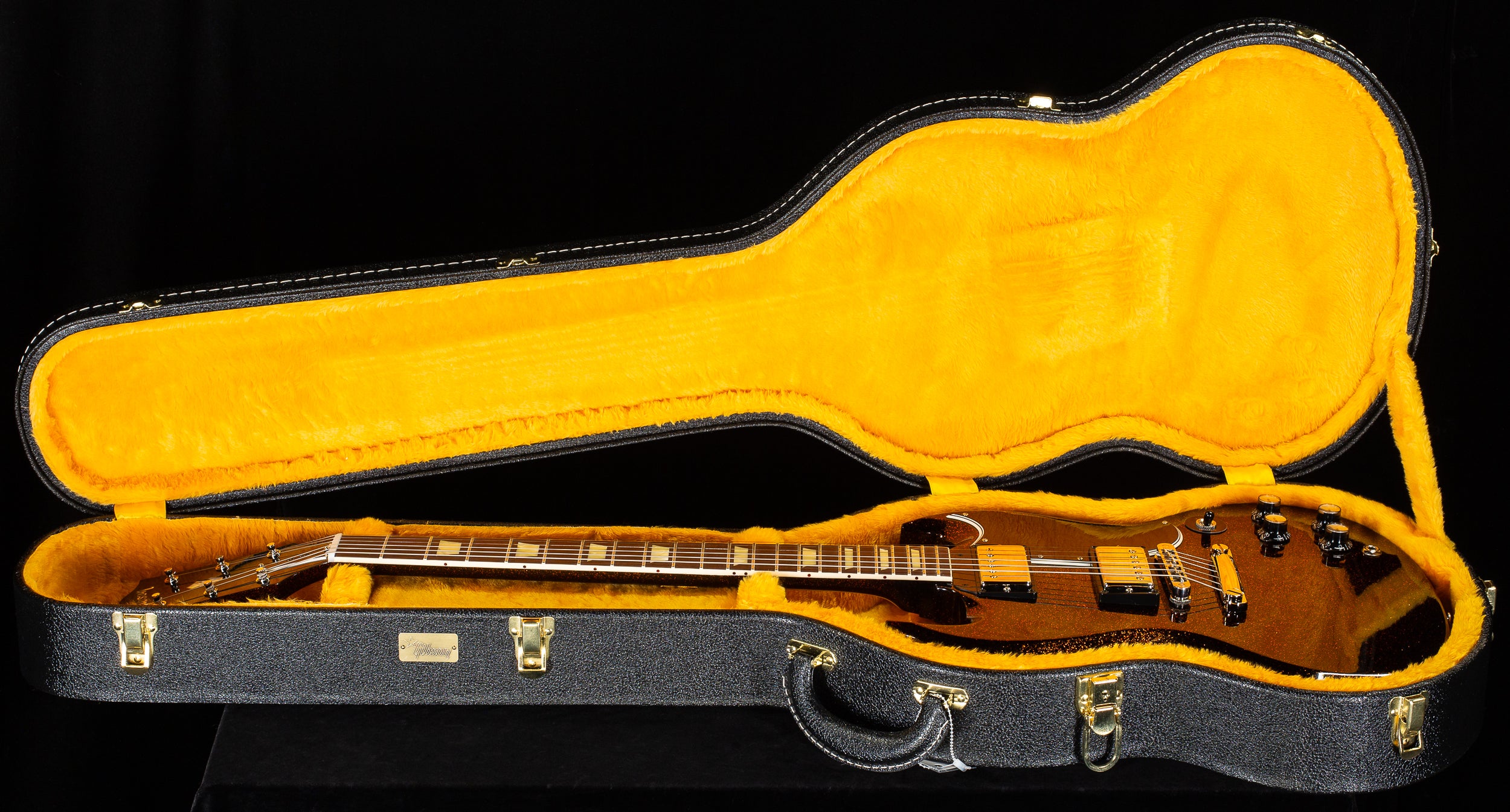 This one-off Gibson Custom Shop 1961 SG Standard takes a true classic and pushes it into rare, show-stopping territory. Finished in a custom Brunswick Orange Gloss, this guitar features a large-flake sparkle treatment that explodes under light—far bolder and more dimensional than any standard SG finish. It’s an unmistakable Custom Shop creation built for players and collectors who want something genuinely unique.