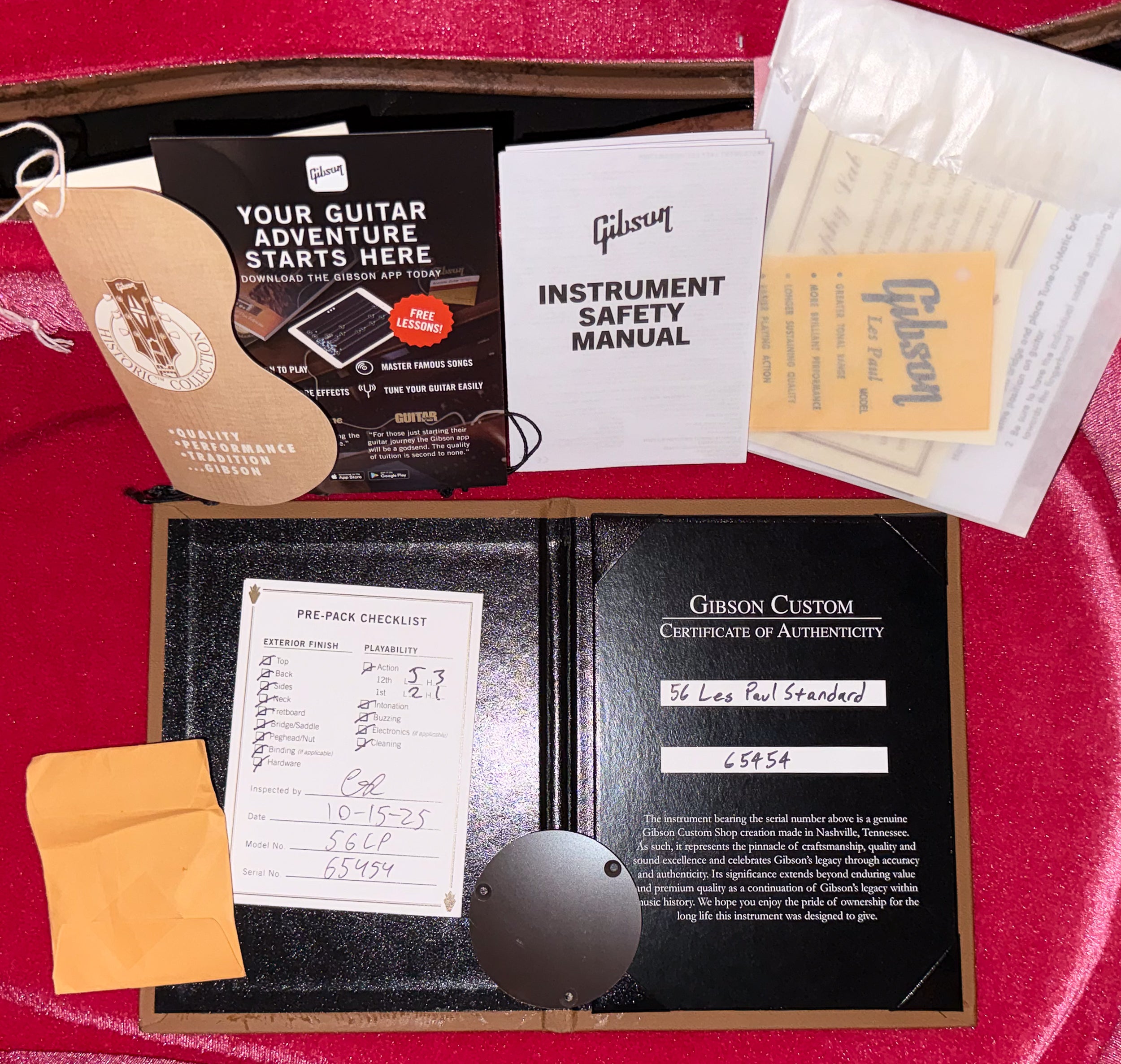 Included Accessories: Gibson Custom Switchplate Medallion (w/ Historic Brown Plastic Cover in Case), Certificate of Authenticity Booklet, Historic Reissue Hang Tags