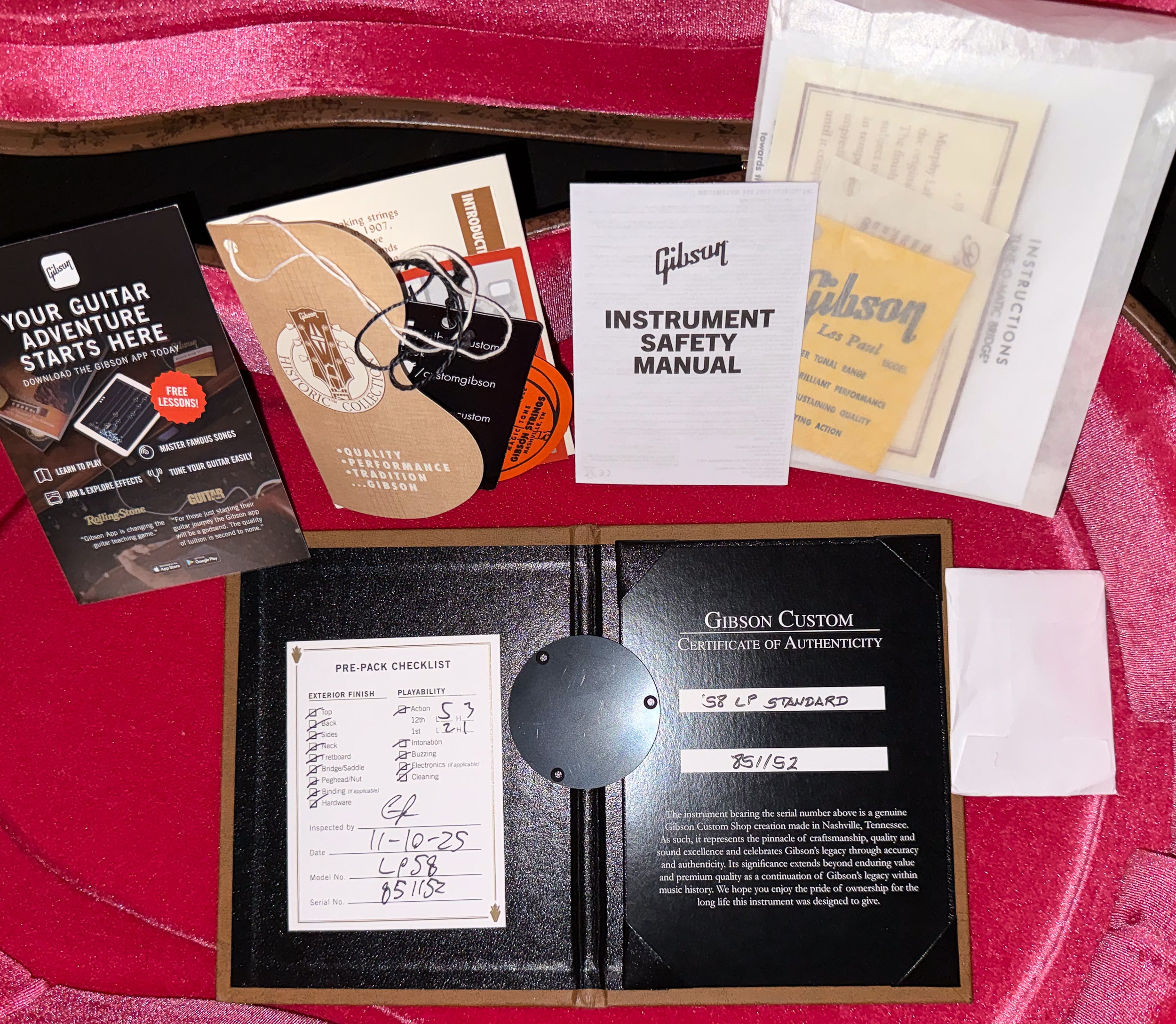 Under the hood, a matched set of Custombucker Alnico 3 (unpotted) pickups delivers the dry, woody clarity and vintage bloom of a true late-’50s PAF. Period-correct details—Royalite binding, gold butyrate knobs, M69 rings, no-wire ABR-1, lightweight aluminum stop bar, and nickel hardware—complete an instrument built with total historic accuracy.