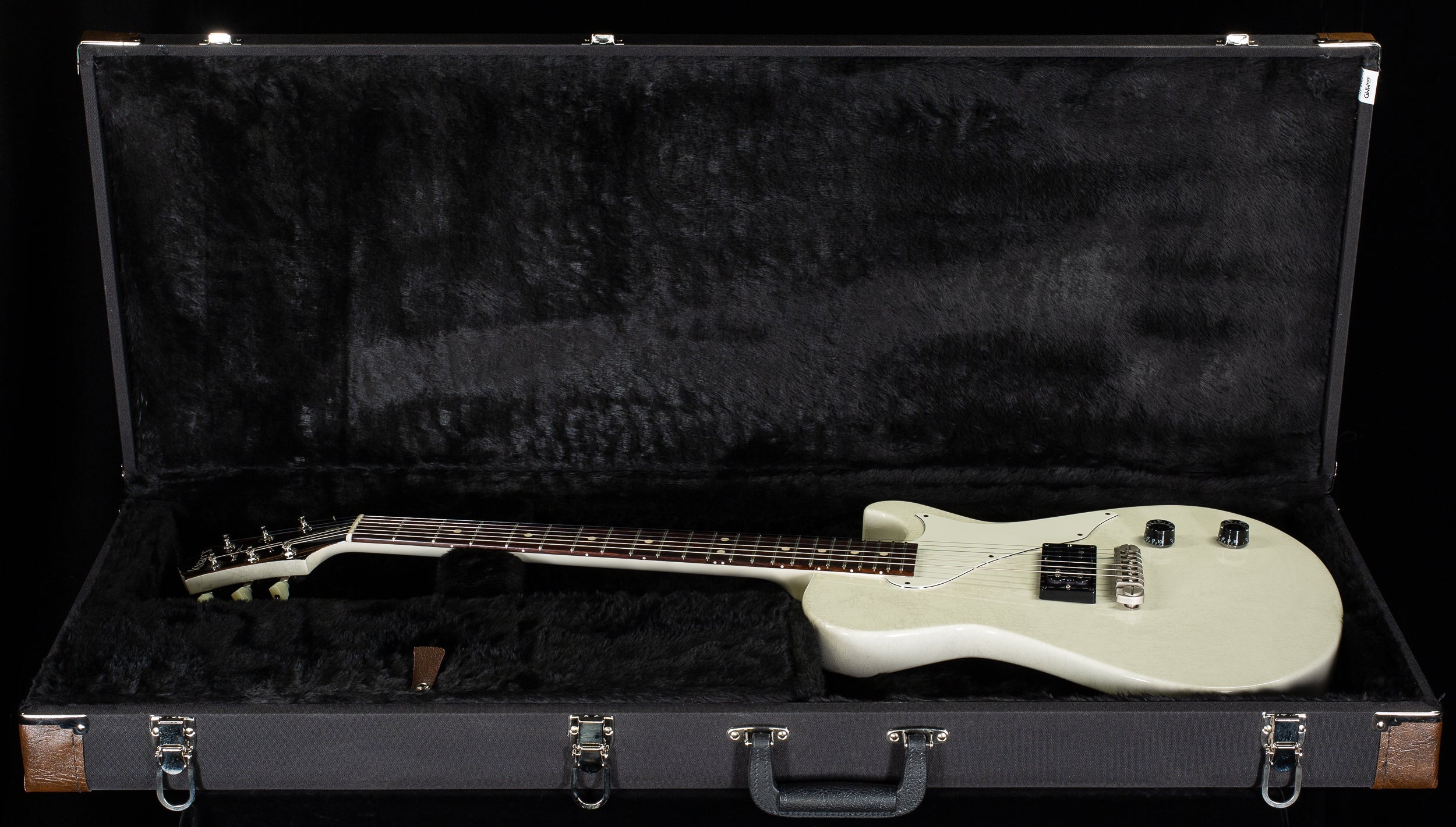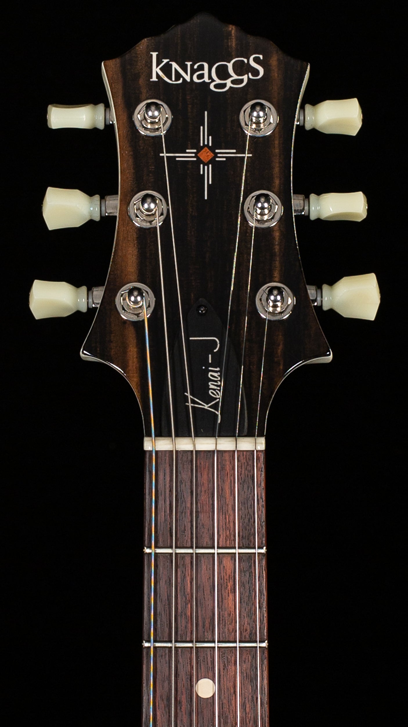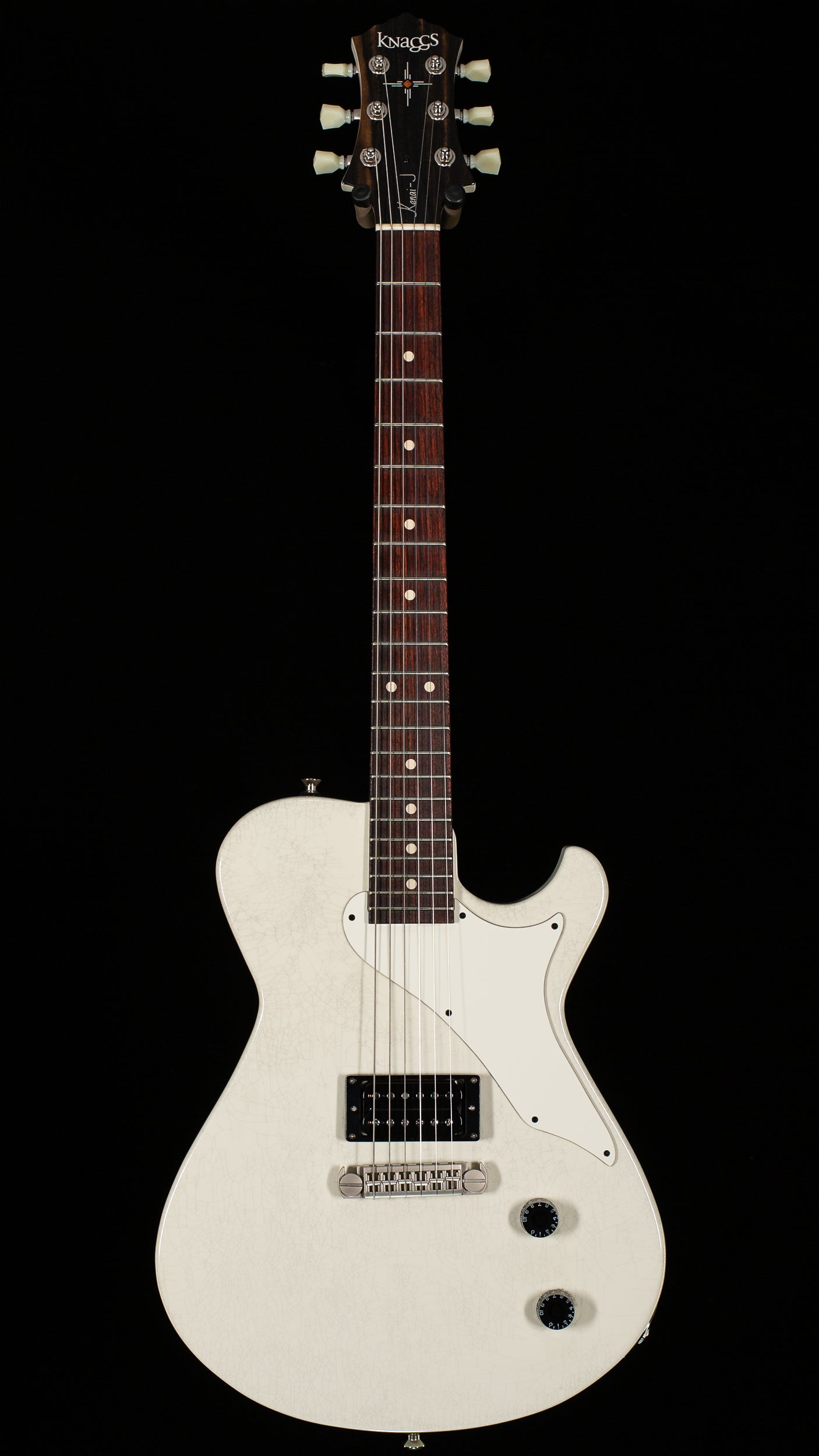 This Knaggs Kenai “J” H-41 is a beautifully built, lightweight boutique electric finished in an elegant Crème Aged Nitro that highlights the guitar’s refined lines and subtle vintage character. With a mahogany body and neck, East Indian rosewood fingerboard, and ebony headstock veneer, it delivers a warm, resonant tonal foundation with excellent clarity and sustain. Outfitted with a Seymour Duncan SH-4 pickup, TonePros wraparound bridge, and Kluson tuners, it offers a punchy, articulate voice with rock-solid tuning stability. Weighing just 6.6 lbs, this Kenai is exceptionally comfortable, responsive, and balanced—an outstanding choice for players seeking boutique tone, feel, and visual elegance.