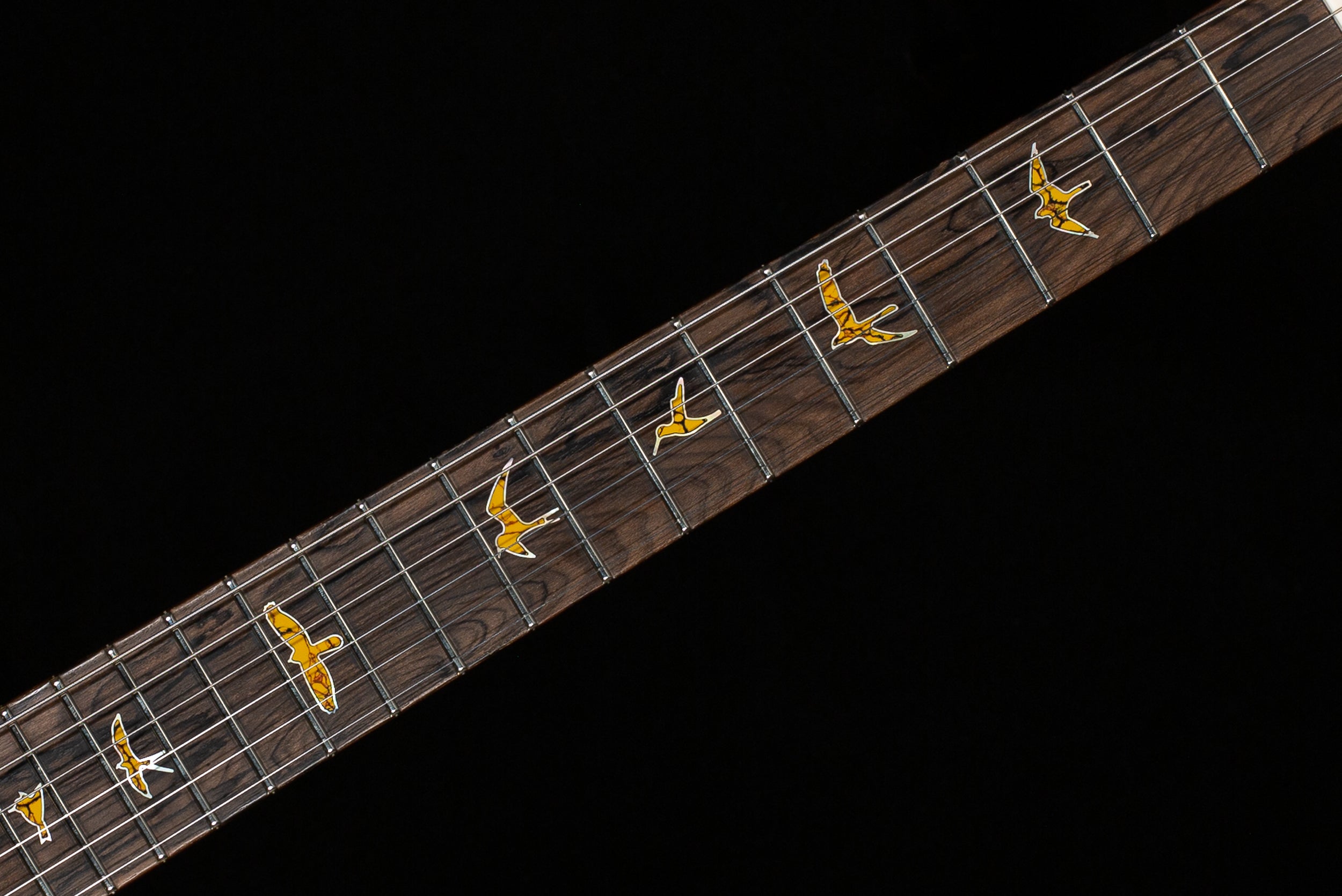 Hardware: Smoked Black/Gold PRS 2-Piece Stoptail Bridge, PRS Vintage-Style Tuning Pegs, Ebony Pickup Rings, Bone Nut, Ziricote Truss Rod Cover