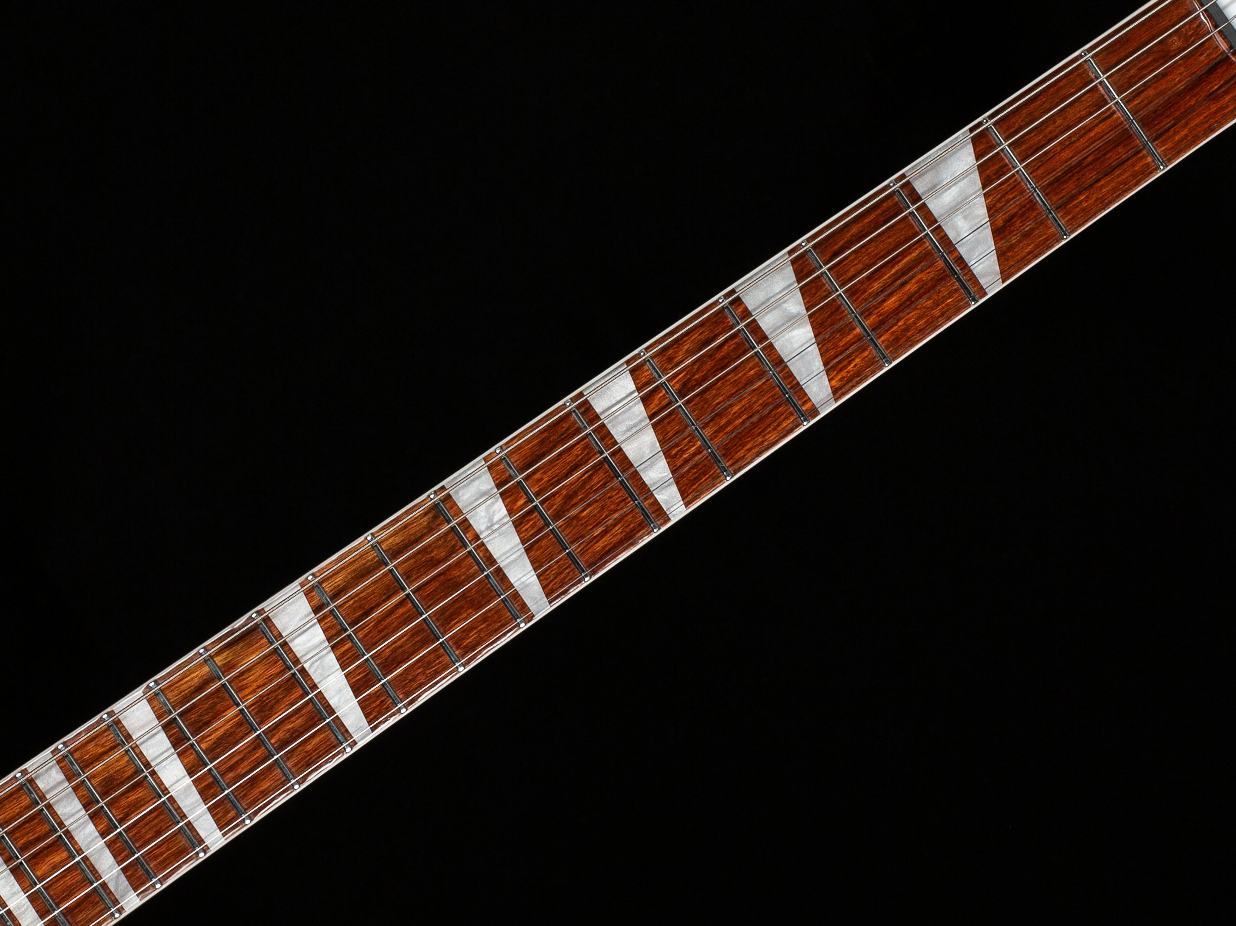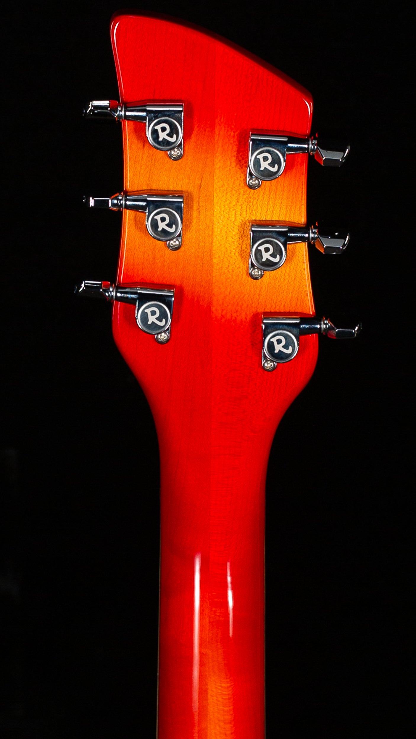 The Model 620 features the famous 'Cresting Wave' Maple cutaway body based on an innovative design from the 1950's. A Rosewood fingerboard is punctuated beautifully with triangular pearloid inlay markers, while the maple double bound neck and body are solid through and through. The 620 is electronically engineered to the exacting standards of the 300 series, complete with Rickenbacker's own high gain pickups and stereo output. Successfully retaining the balance from the original specifications, the 620 is another fine example of Rickenbacker quality workmanship.