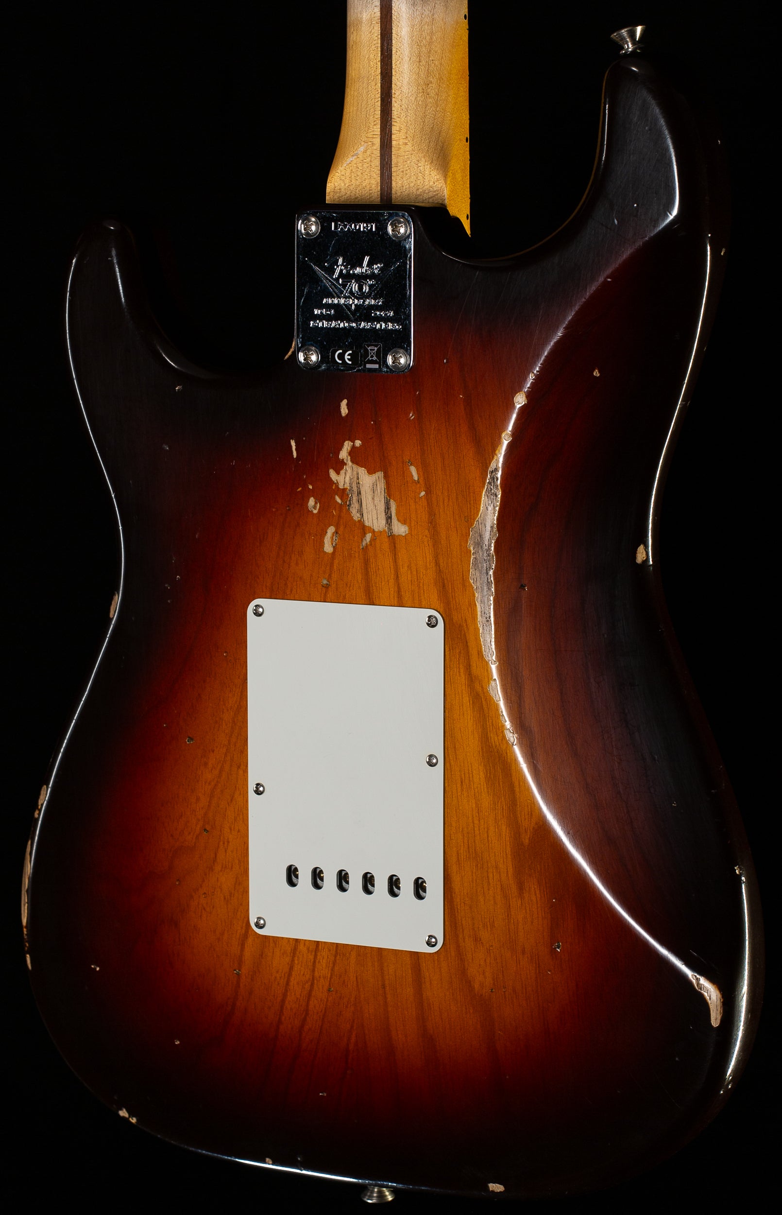 Its one-piece quartersawn maple neck is fashioned with a special 70th anniversary Soft “V” profile based on an incredible Strat® neck from July 1954, topped by a 9.5”-radius fingerboard with 21 narrow tall (6105) frets and a 1.625” bone nut. Three Custom Shop hand-wound Fat ’50s Strat® pickups produce crisp highs and well-balanced mids and lows, using Fat ’50s Strat wiring and five-way switching.