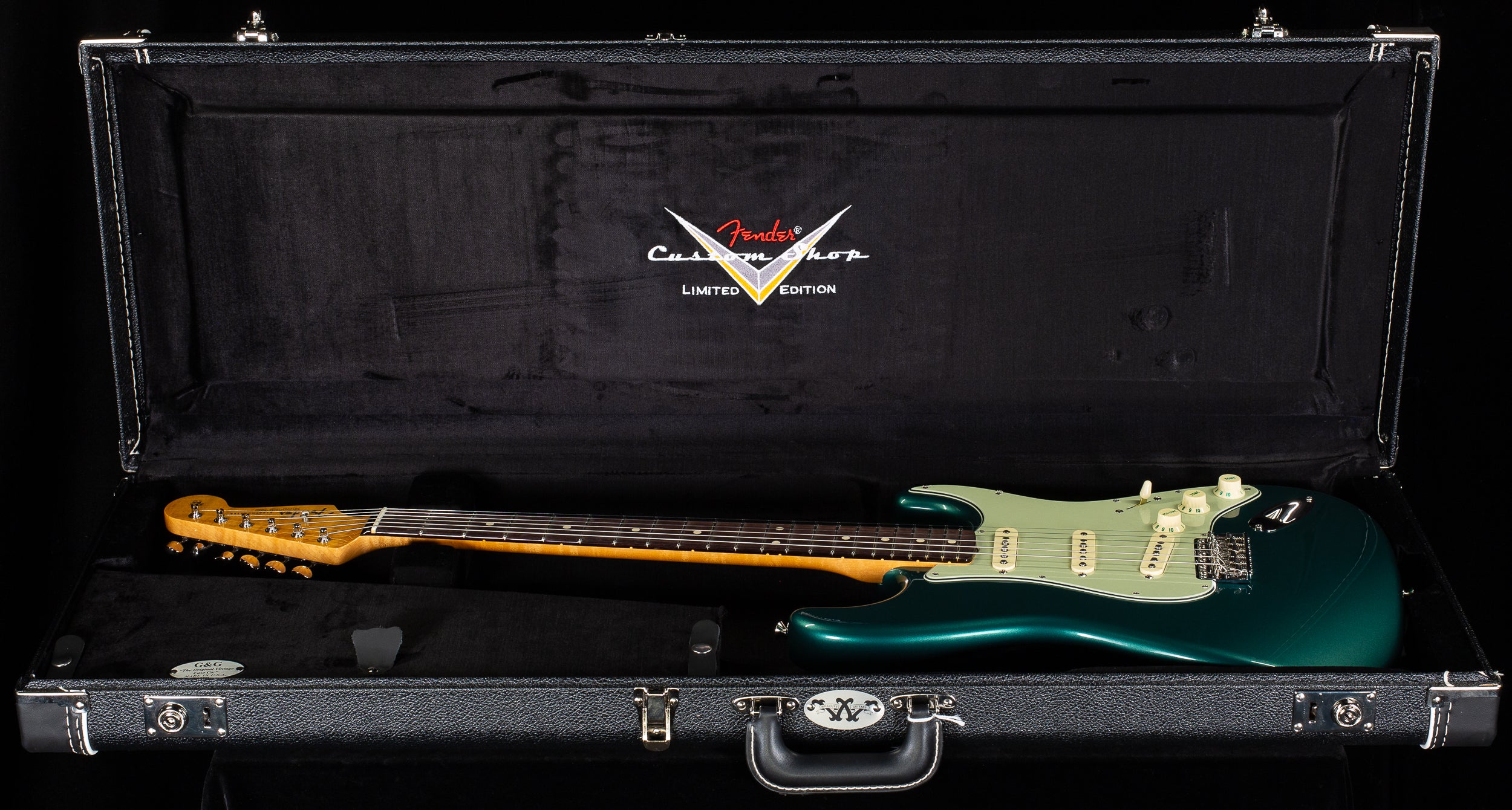 In order to accommodate different players styles and preferences, we have included some different neck shapes, maple necks and different color finishes. The Willcutt Fender Custom Shop wound True 62 pickups are included as well as the custom case.A unique opportunity to own a limited version of the Fender Stratocaster history awaits you! Special Features Include: Custom Handwound Pickups, Vintage Style Tremolo Bridge with Shallow Drilled Trem Block, AA Flamed Maple Neck, AAA Rosewood Fretboard and Custom Willcutt True '62 Deluxe Hardshell Case.