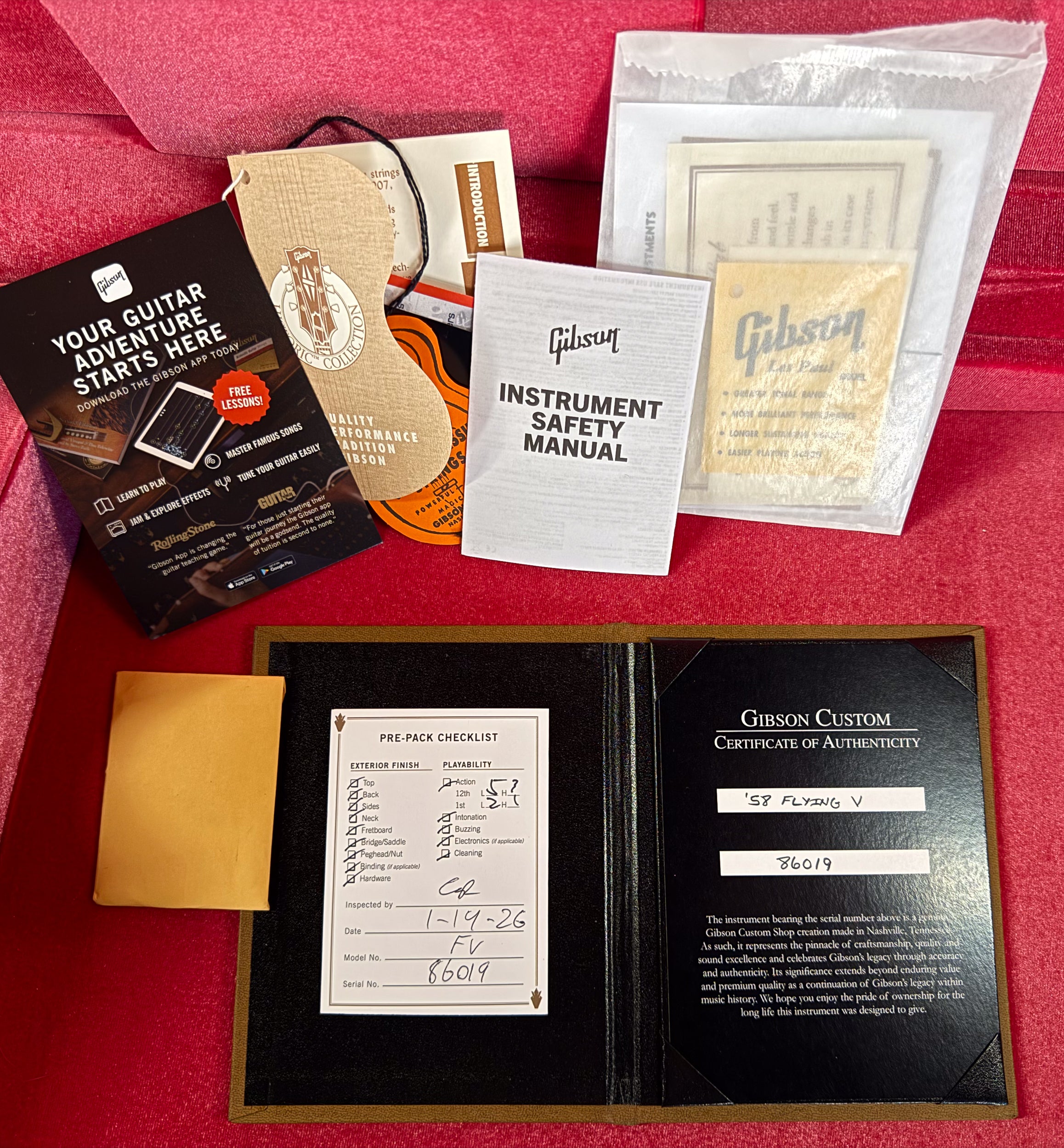 This version of the 1958 Flying V uses mahogany instead of the original Korina wood for the neck and body, but otherwise, all of the classic vintage Flying V features have been carefully recreated in this Historic Reissue model. Mahogany delivers a somewhat warmer sound than the slightly brighter Korina, making it a great choice for players who love the 1950s Flying V aesthetic but who are looking for a denser, all-mahogany tone for rock and metal. And since mahogany is more readily available than the scarcer Korina, this also makes this 1958 Mahogany Flying V Reissue the most accessible way to get Historic Flying V looks, features, and performance.