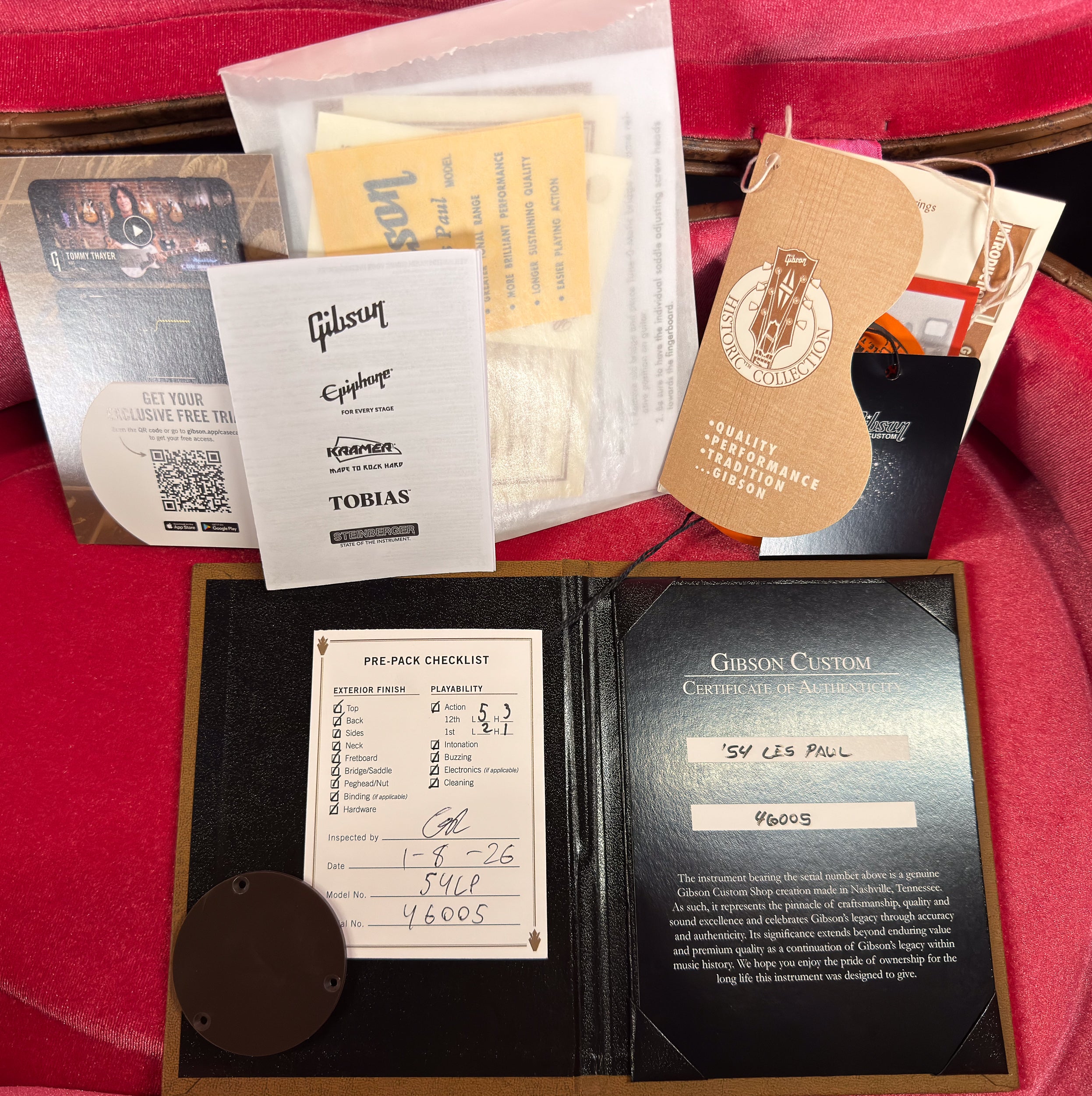 Included Accessories: Gibson Custom Switchplate Medallion (w/ Historic Brown Plastic Cover in Case), Certificate of Authenticity Booklet, Historic Reissue Hang Tags