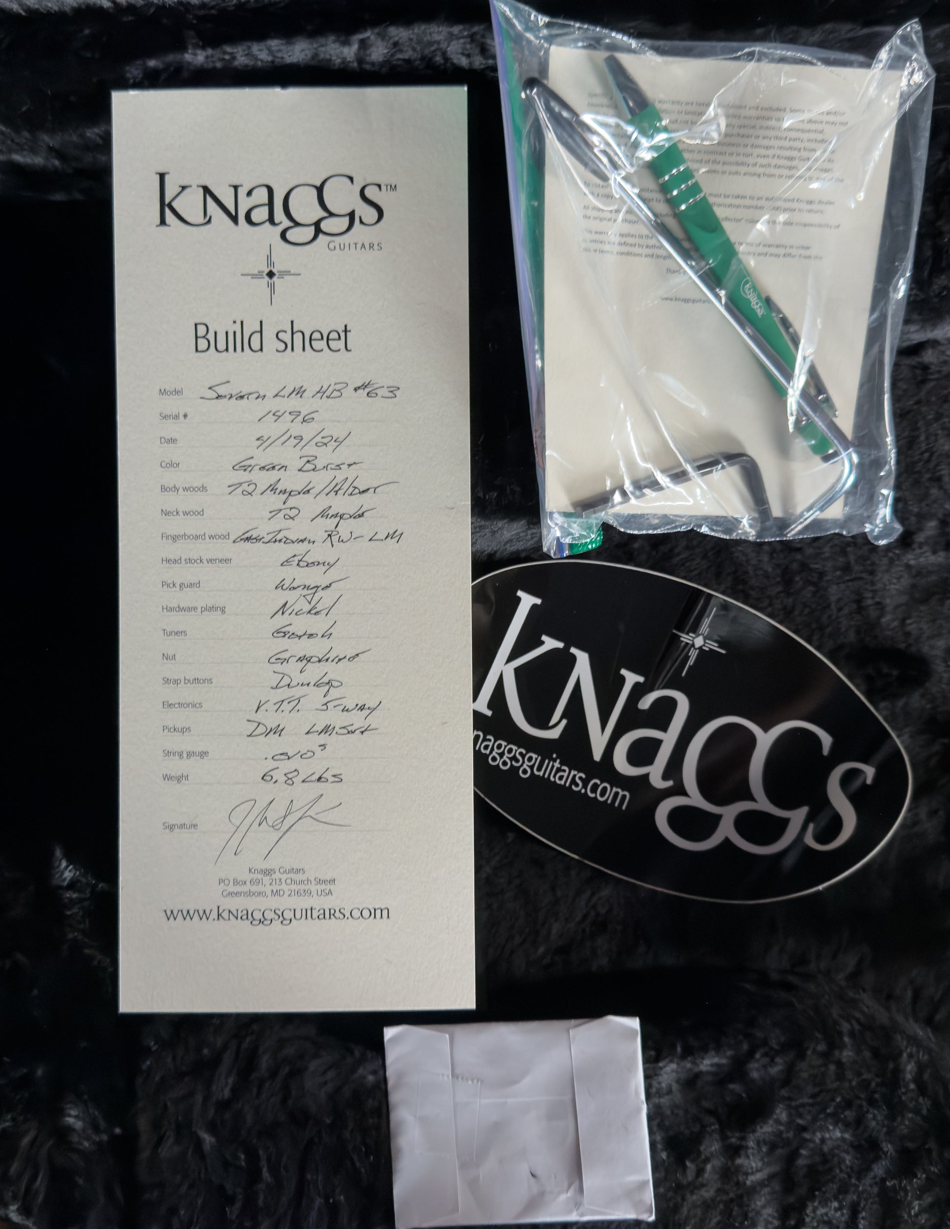 A stunning example of Knaggs’ boutique craftsmanship, this 2024 Larry Mitchell Severn LM Hollowbody delivers the airy resonance of a semi-hollow design paired with the snap and articulation the model is known for. The Green Burst finish highlights the beautiful T2 Maple top, while the set-in T2 Maple neck and Indian Rosewood fingerboard add warmth and clarity. Outfitted with Larry Mitchell’s signature DM LM Sig pickups and a versatile V.T.T. 5-way switching layout, this guitar is built for expressive, dynamic playing. Lightweight, responsive, and visually striking—this one is a tone machine with serious stage presence.