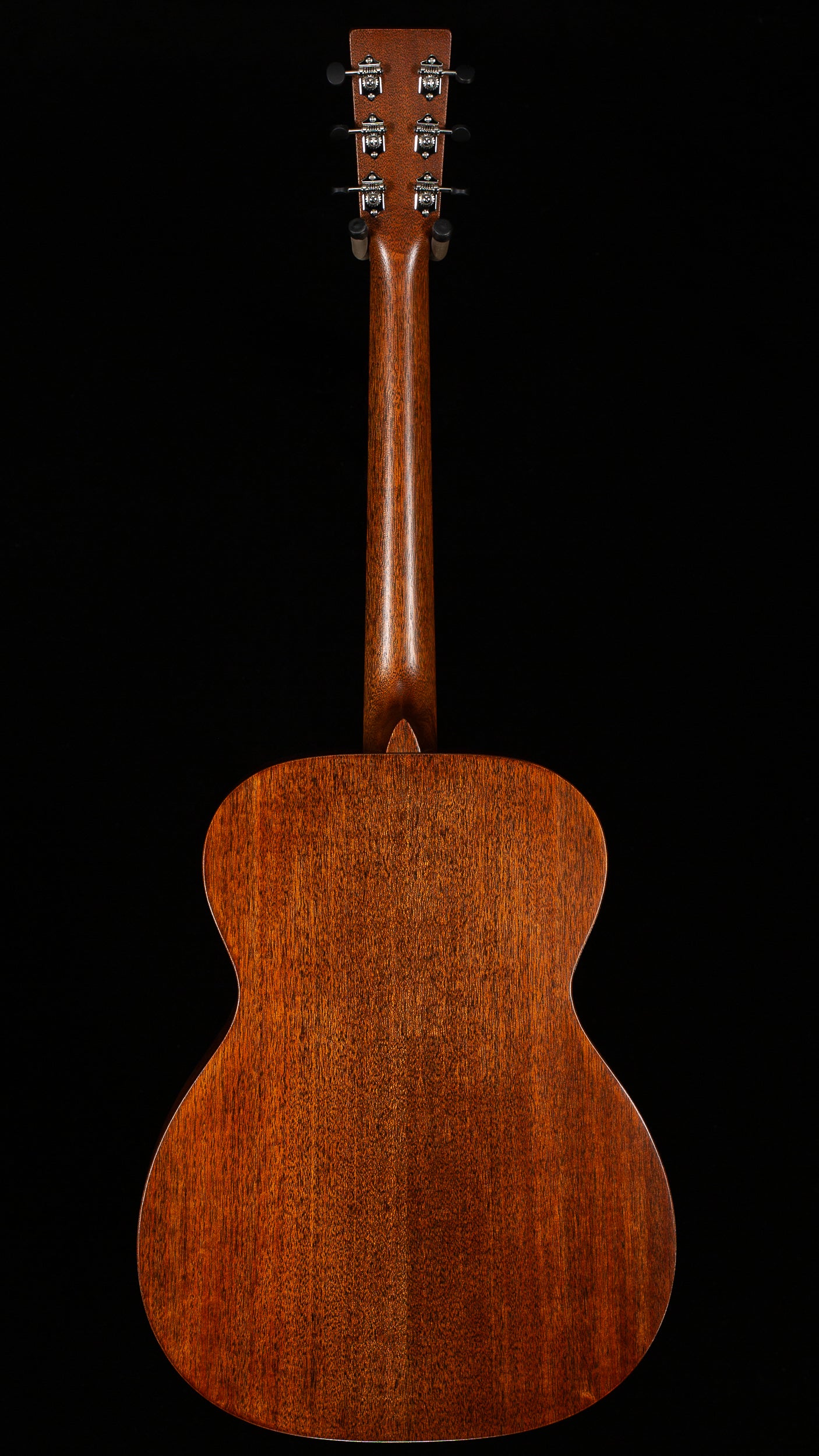 Top: Solid genuine mahogany Rosette: Single ring Back material: Solid genuine mahogany Side material: Solid genuine mahogany Neck shape: Modified Low Oval Headstock: Solid/Standard Taper Scale length: 25-3/8" Fingerboard width at nut: 1-11/16" Bridge material: Solid East Indian Rosewood Bridge style: Belly Tuning machines: Nickel open-geared with butterbean knobs Pickguard: Delmar tortoise color Case: Gigbag