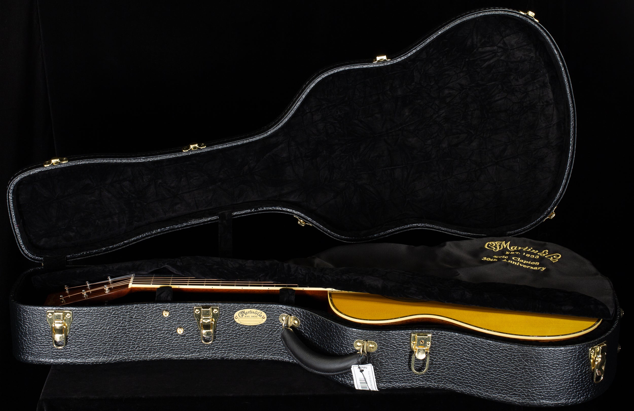 Celebrate three decades of Eric Clapton’s legendary collaboration with Martin Guitar with the 000-42EC 30th Anniversary acoustic. Limited to just 300 instruments, this milestone model takes inspiration from the guitar Eric played during his iconic MTV Unplugged performance, faithfully capturing the essence of that pre-war Martin. Crafted with premium tonewoods, the 000-42EC 30th Anniversary pairs a solid Adirondack spruce top with antique toner and solid Guatemalan rosewood back and sides. This combination delivers a warm, rich tonal depth, perfectly suited for both delicate fingerstyle playing and bold strumming. The scalloped Adirondack spruce Golden Era-inspired bracing enhances resonance and projection, ensuring this guitar fills any room with an unmistakably full-bodied sound. The genuine mahogany neck and Authentic 1939 shape, paired with a slightly thinner nut width and an ebony fingerboard adorned with Golden Era 42-style snowflake inlay, offer effortless playability and classic looks. Not only does this guitar showcase vintage-inspired specs and dazzling pearl inlay, but each limited-edition signature model includes a paper label hand-signed by Eric himself, a printed certificate of authenticity to further commemorate our longstanding partnership, and a premium, embroidered Harptone case with a matching shroud exclusive to this model. It even comes strung with Clapton’s Choice phosphor bronze strings for his preferred sound and feel, plus an extra set in the case pocket. Together with the 000-EC 30th Anniversary model, these instruments honor 30 years of groundbreaking guitar collaboration, offering something for every fan of Eric and Martin.