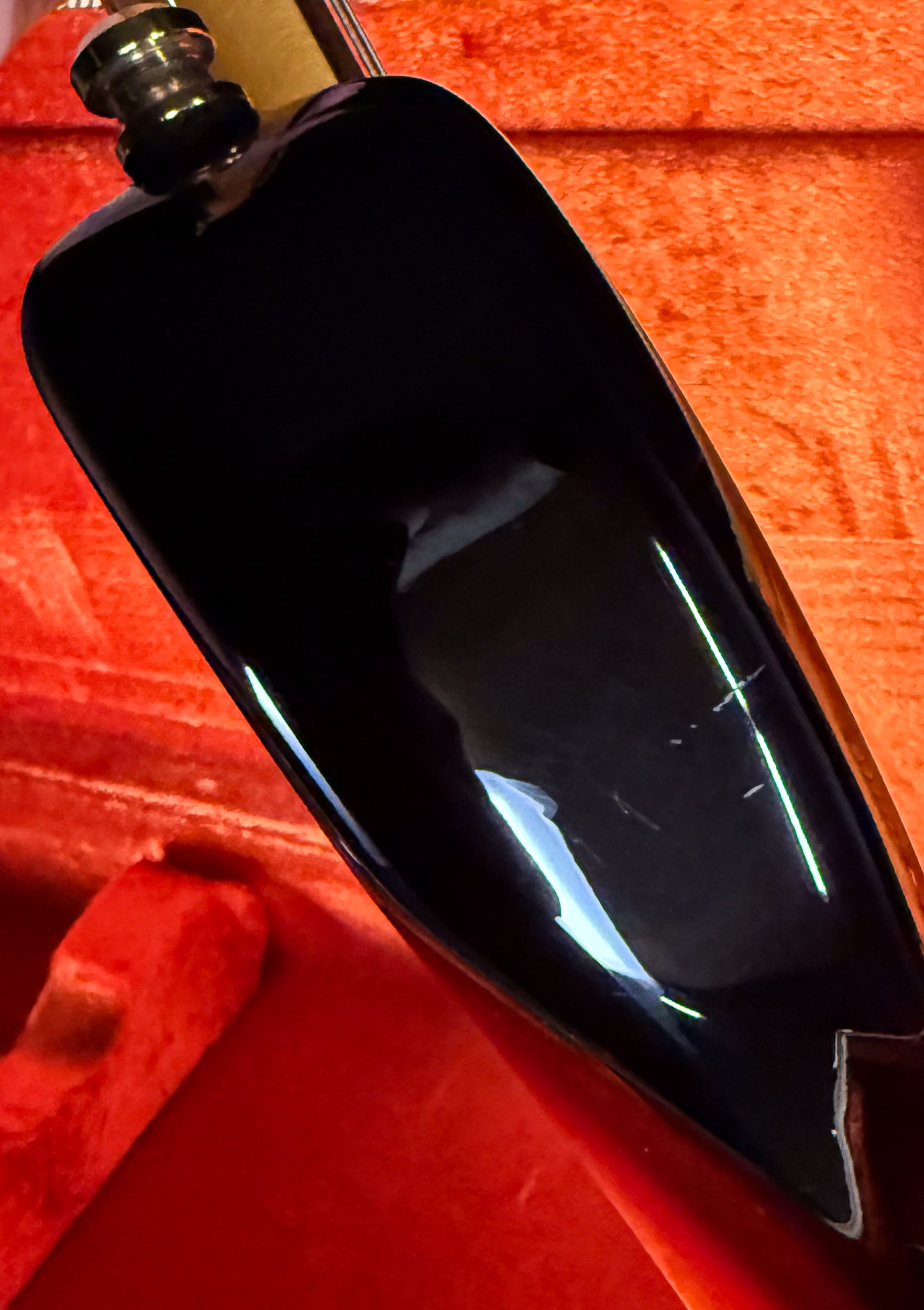 Condition: Very Good – scratches and dings on bass side of pickguard; replaced black pickguard, original pickguard included