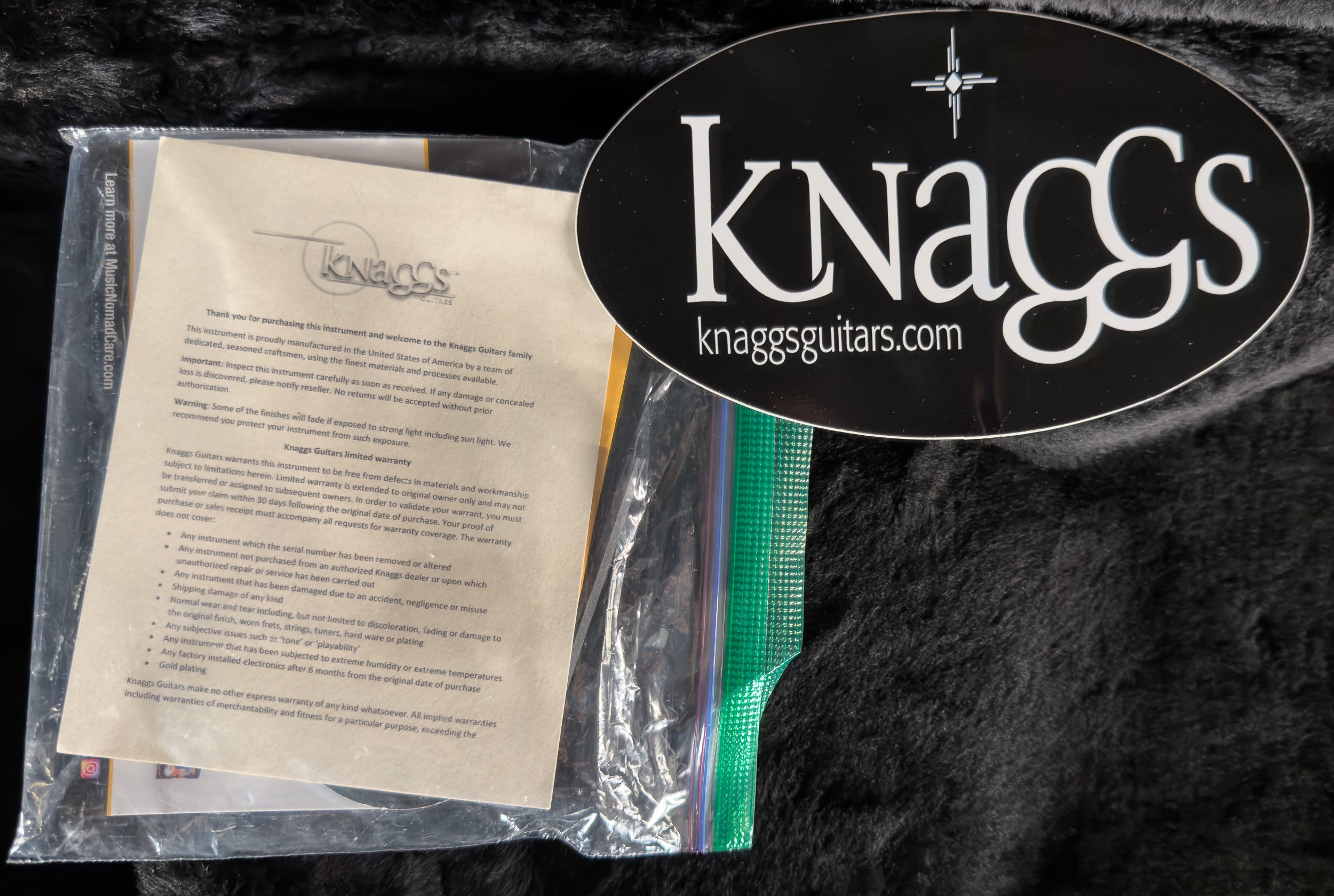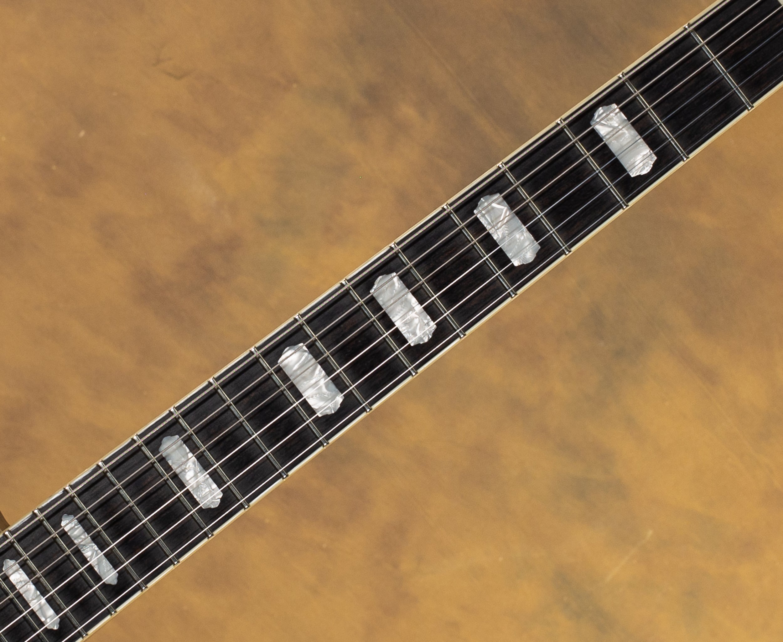 Custom-built to exacting standards and completed in January 2021, this Kenai features premium appointments including black-ivorized binding, an ebony fretboard with crème binding and block inlays, ebony headstock veneer, gold hardware, and Onamac Windery Supreme pickups. Finished in Inca Silver with a semi-gloss look, this limited-edition instrument blends boutique craftsmanship, elegant aesthetics, and serious tone.