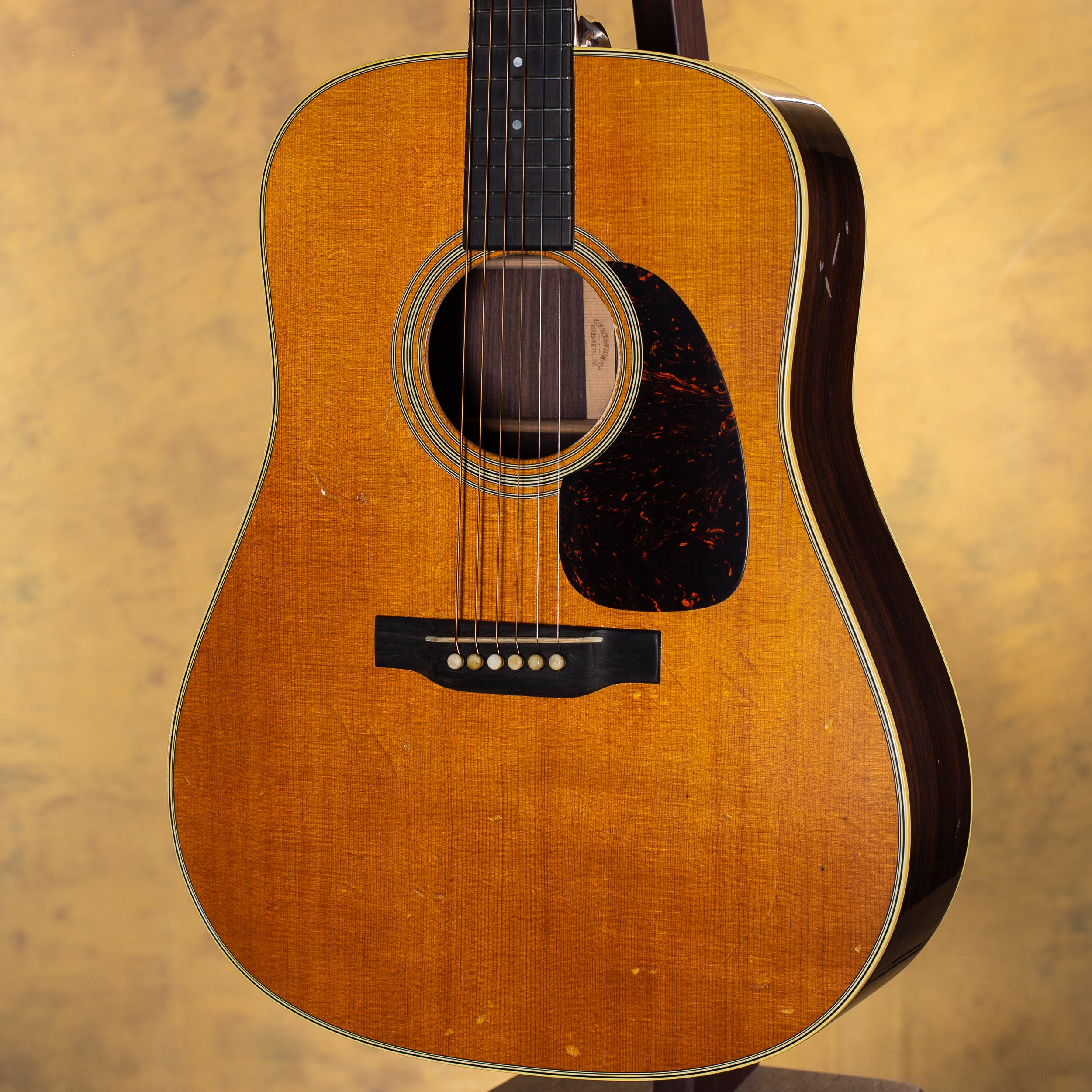 A 2022 Martin Rich Robinson D-28 Aged, this artist model brings vintage-inspired tone and feel together with Martin’s modern precision and craftsmanship. Built with a Sitka spruce top and East Indian rosewood back and sides, it delivers the powerful low end, clear highs, and rich overtones the D-28 is known for. The aged vintage gloss finish and hide glue construction enhance resonance and give it a broken-in character, while the custom 1954 Rich Robinson neck carve offers a substantial, comfortable feel.