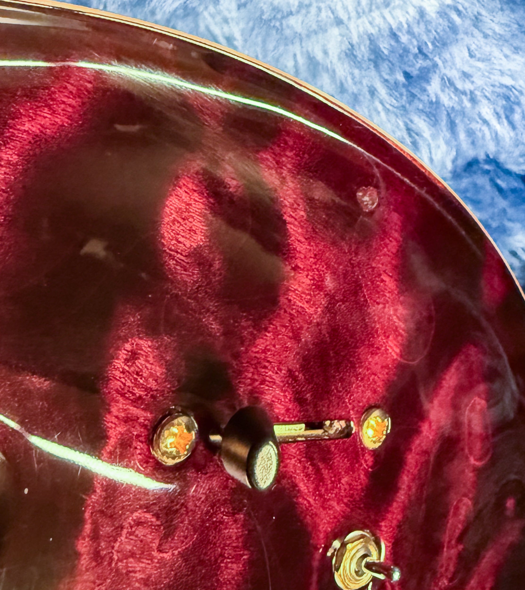 ──────────────────────────── Condition: Very Good (surface scratching throughout, large ding near controls, small dings on horn) Neck Depth: .89–.99 ──────────────────────────── Top Wood: 10-Top Quilted Maple Back & Sides: Mahogany Body Type: Semi-Hollow Finish: Nitrocellulose Lacquer Neck Material: Stained Figured Maple Neck Shape: Pattern Fingerboard Material: Brazilian Rosewood Fingerboard Inlays: Sparkle Mother-of-Pearl J-Birds with Gold Mother-of-Pearl Outlines Scale Length: 25" Number of Frets: 22 Bridge: PRS Gen III Tremolo Tuners: PRS Phase III Locking Tuners Hardware: Hybrid Pickups: 58/15 LT+ Treble & Bass (Bridge & Neck) | Narrowfield Single-Coil (Middle) Pickup Configuration: HSH Controls: Volume | Volume | Tone (Push/Pull) | Tone (Push/Pull) Switching: 3-Way Toggle Case: Black Paisley Hardshell