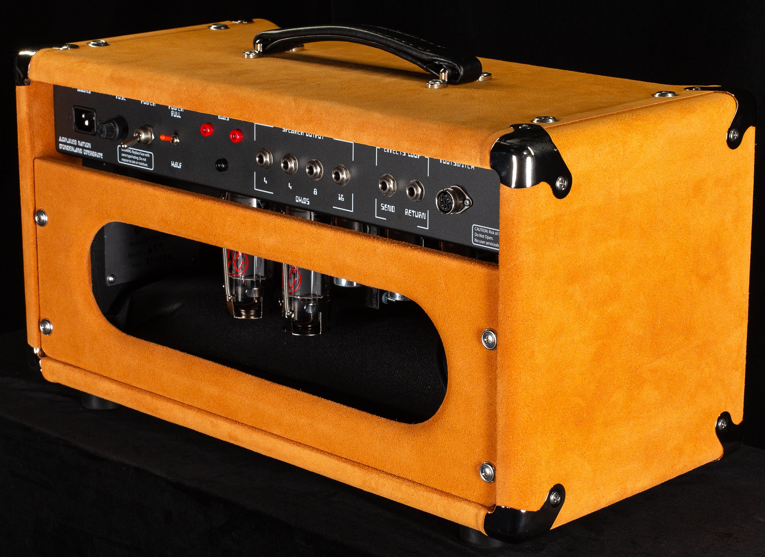 The amp is hand built into a durable powdercoated aluminum chassis. Circuit boards are CNC punched and the amp is wired by hand with high end components including Orange Drop capacitors, F&T electrolytic filters, Dale and Koa resistors, Classic tone and Heyboer Transformers.