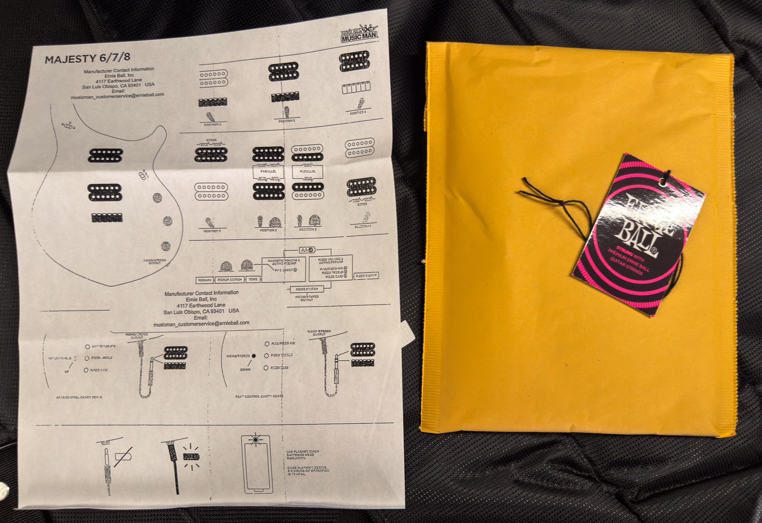 Switching: 3-Way Toggle Pickup Selector w/ Custom Center Position | 3-Way Piezo/Magnetic Selector | Push/Push Mono/Stereo Output Switch (Rear Cavity)