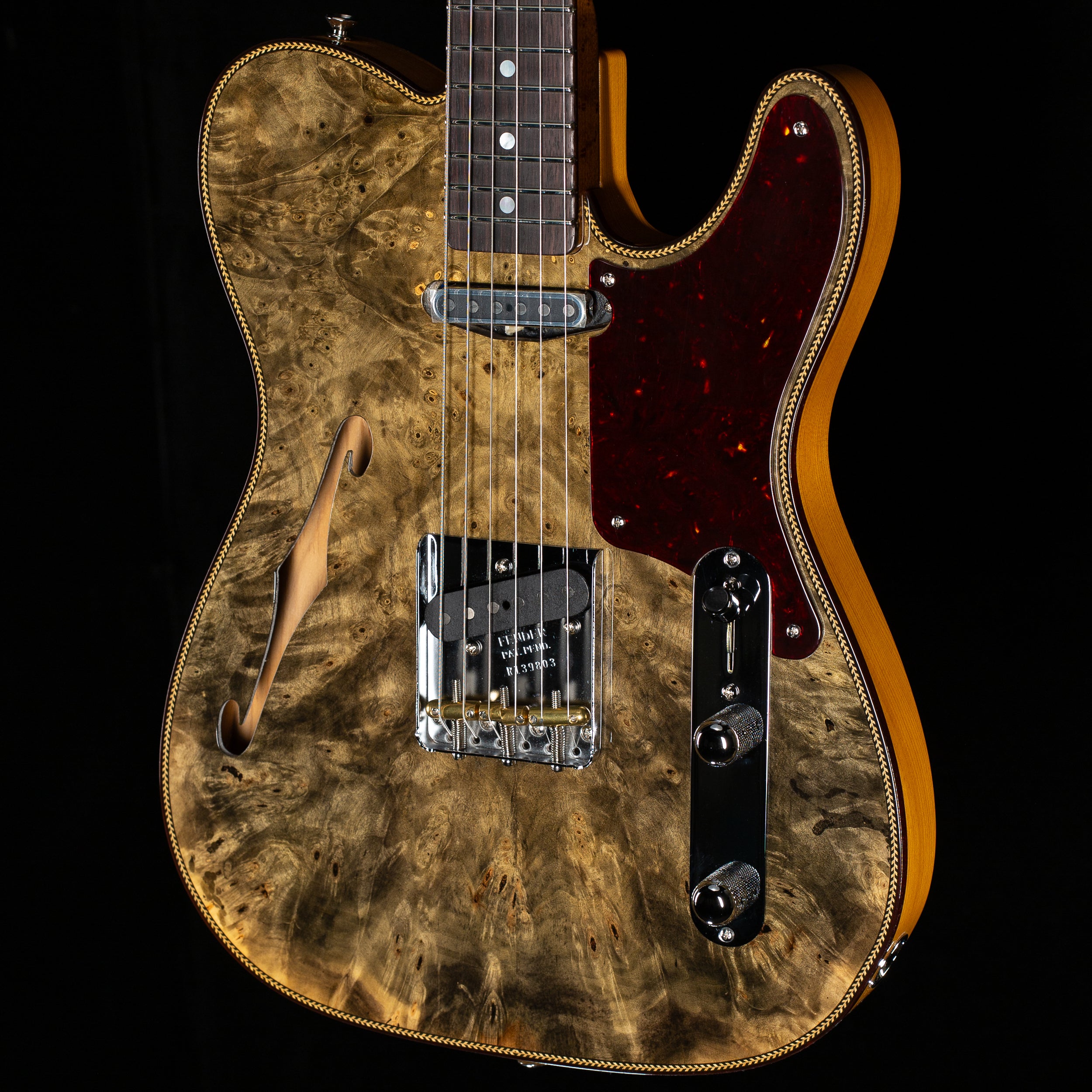 The Artisan Buckeye Burl Double Esquire combines the finest hand-selected woods with elegant design, innovation and player-centric appointments fusing form and function into one. A hollow roasted pine body and figured buckeye burl top are bound with brown shell top binding and herringbone purfling, all finished in NOS nitrocellulose lacquer. The 3A roasted birdseye maple neck has a '60-style "oval C" profile, topped by a 9.5"-radius round-lam rosewood fingerboard with 21 narrow tall frets.