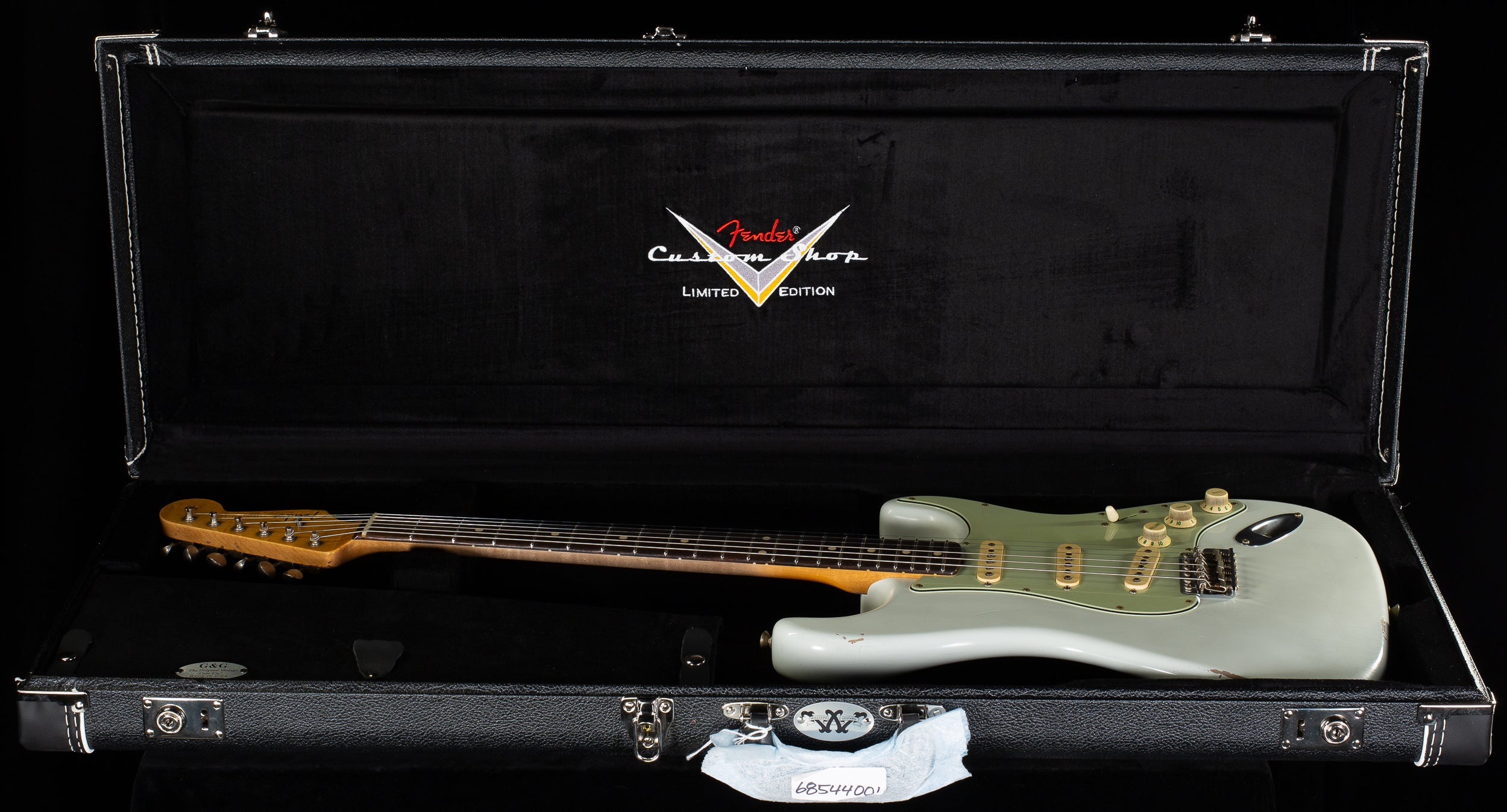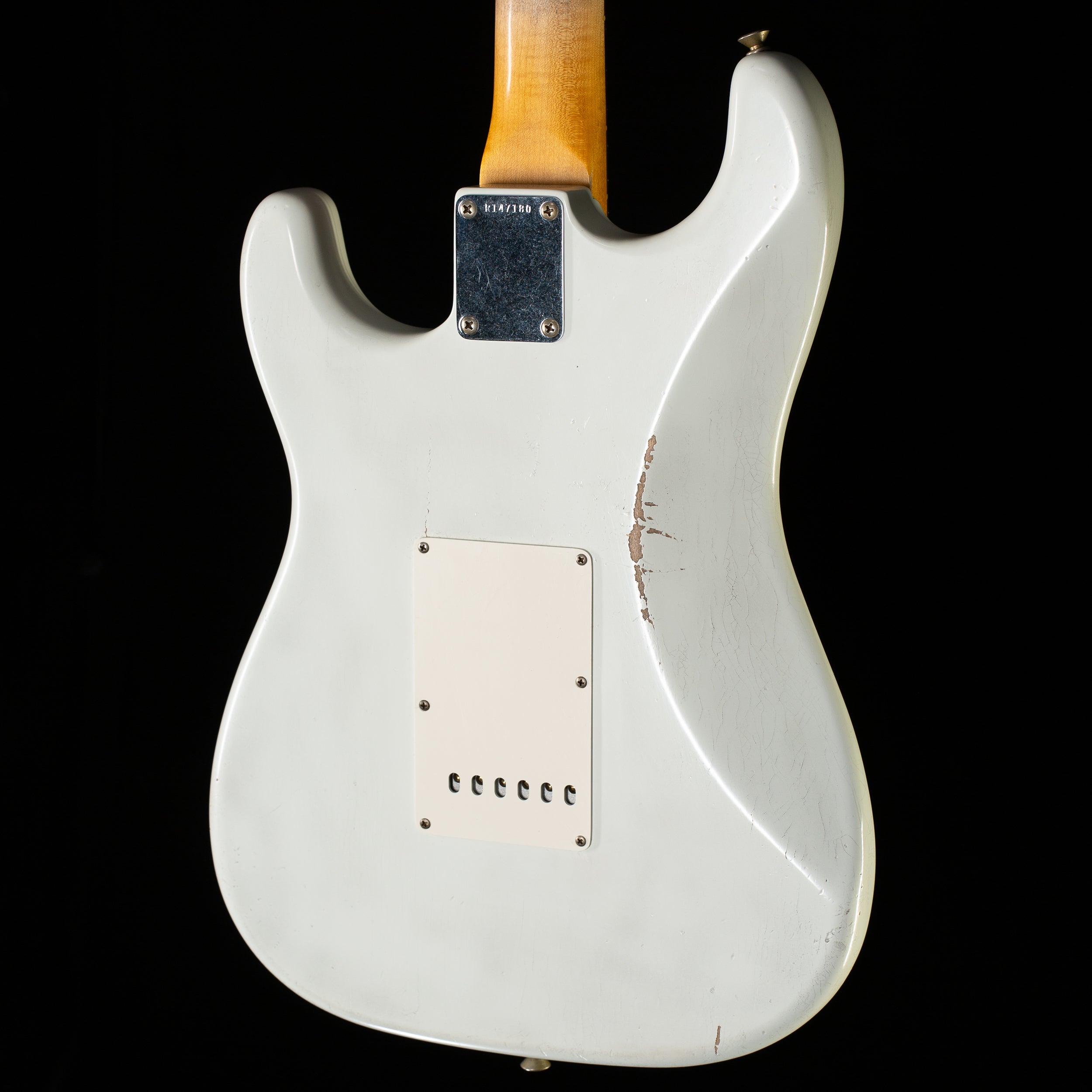 If there is one guitar that represents modern music of all genres, it is the iconic Fender Stratocaster. Thousands have passed through Willcutt Guitars in the 50 years that we have been selling, restoring , and placing in the hands of enthusiastic players One stands out as the most exceptional in tone, playability, and overall musical stability. That is the 62 3tsb/rw serial number 79498 that is now owned by the great blues player Eugene Woods. Since there is only that one, and others want to experience the sound and feel of the original, we commissioned the Fender Custom Shop to make precise reproductions with a limited run only available at Willcutt Guitars.The pickups were custom wound, sweet and full bodied, to match the 79498 specs and the neck fit, thin, worn, finish and even the original 3 way switch is reproduced.Some players believe there are more than 5 switch tones when using a 3 way switch. A custom embroidered Custom Shop logo is on the case interior as well as the custom Willcutt Guitars metal plaque." - Bob Willcutt