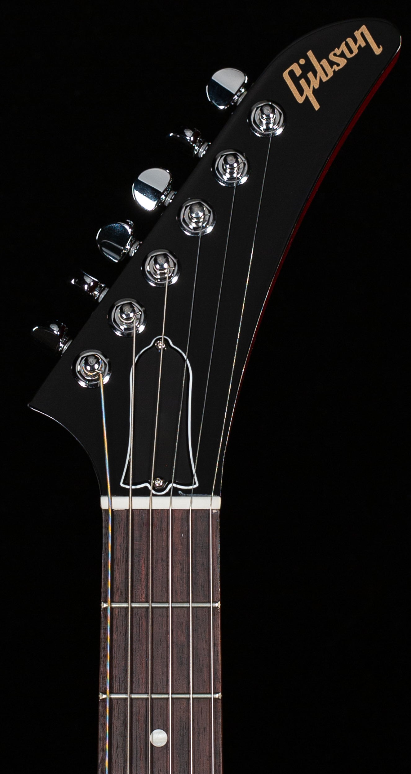 The Explorer 80s features a lightning-fast mahogany neck with a SlimTaper™ profile. The neck is topped with a rosewood fretboard that features 22 medium jumbo frets and understated acrylic dot inlays. The Explorer headstock is equipped with Grover® Mini Rotomatic® tuners and a Graph Tech® nut to ensure the tuning stays dialed in. The other ends of the strings pass over an aluminum Nashville Tune-O-Matic™ bridge and are anchored with an aluminum Stop Bar tailpiece. The iconically shaped mahogany body is outfitted with 80s Tribute humbucker pickups that accurately recreate the fat-toned sound and rich sustain of the Explorer models from the 80s era. The pickups are hand-wired to individual volume controls, while a master tone control with an Orange Drop® capacitor provides even more tonal adjustability; the controls are capped with black Speed knobs for great functionality and a classic aesthetic. There is no pickguard, which helps to give the Explorer 80s a sleek and slightly menacing appearance. If you’re into retro-futuristic guitars, the Explorer 80s brings back some of the era’s edge and attitude. It comes packed in a Gibson hardshell case and is ready to join you wherever your music takes you.