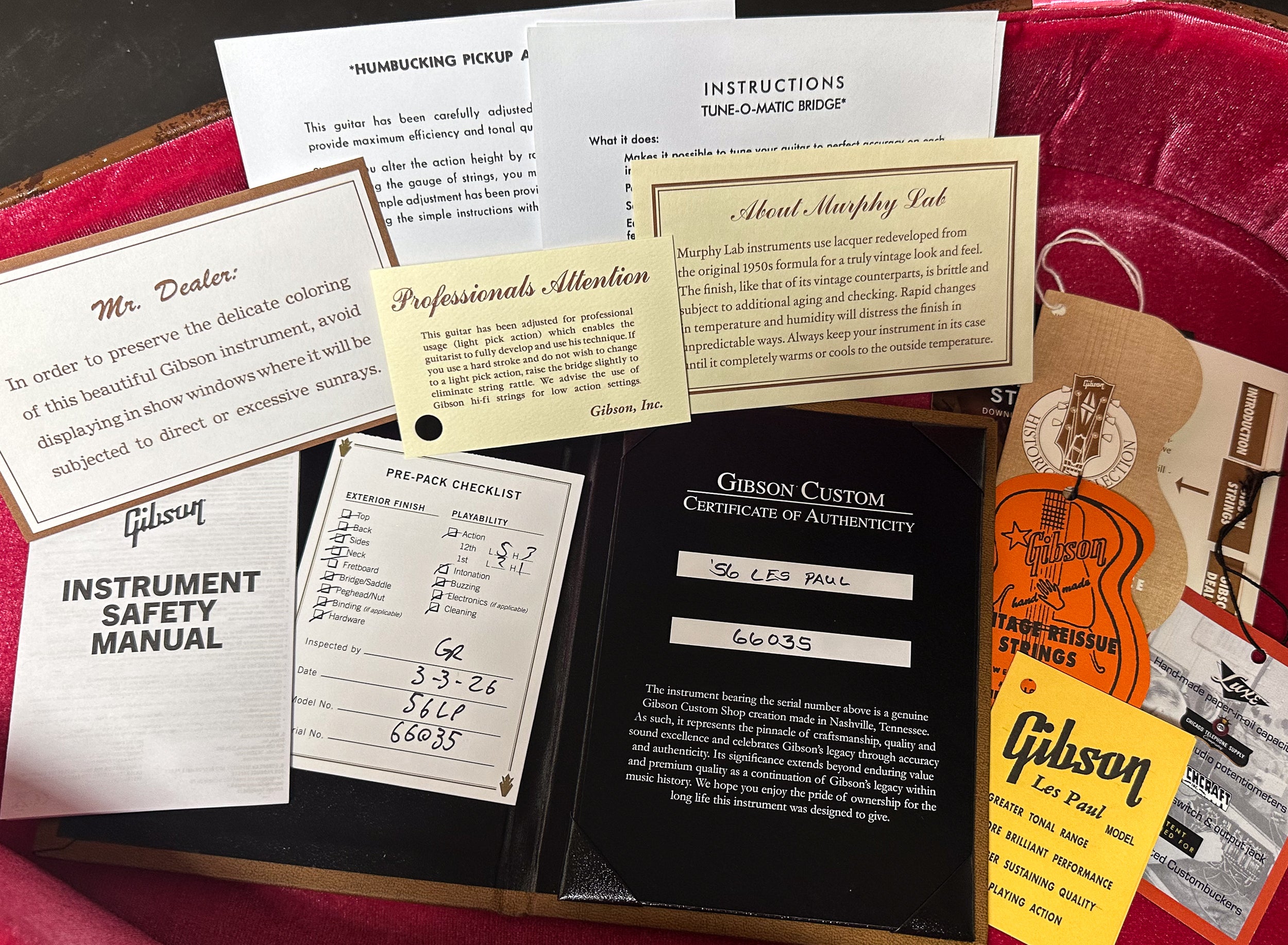 Included Accessories: Gibson Custom Switchplate Medallion (w/ Historic Brown Plastic Cover in Case), Certificate of Authenticity Booklet, Historic Reissue Hang Tags