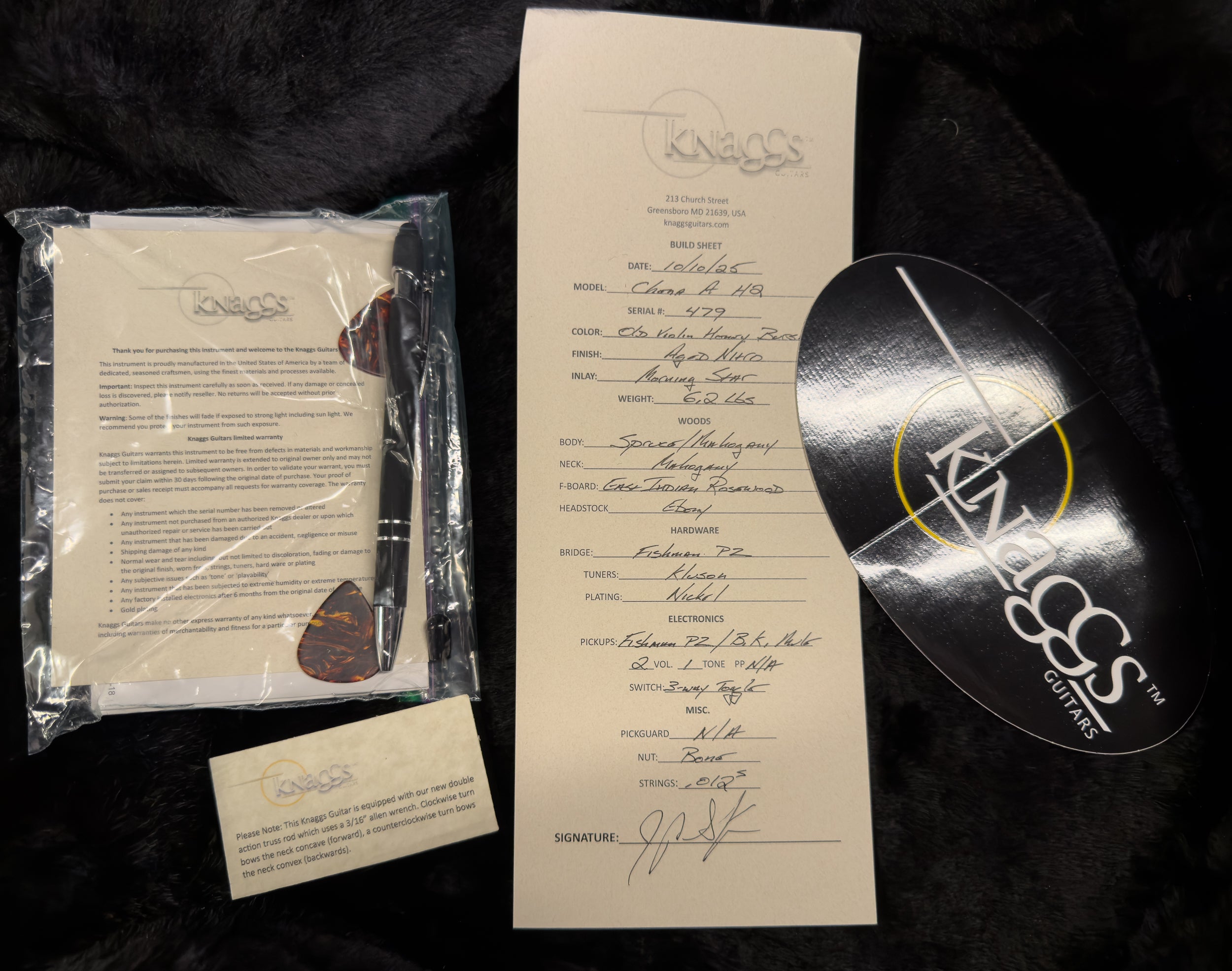 A mahogany neck paired with an East Indian rosewood fingerboard and Morning Star inlays completes the premium feel, while nickel hardware, Kluson tuners, and Knaggs’ signature craftsmanship make this Chena A H2 a standout example of modern boutique perfection.