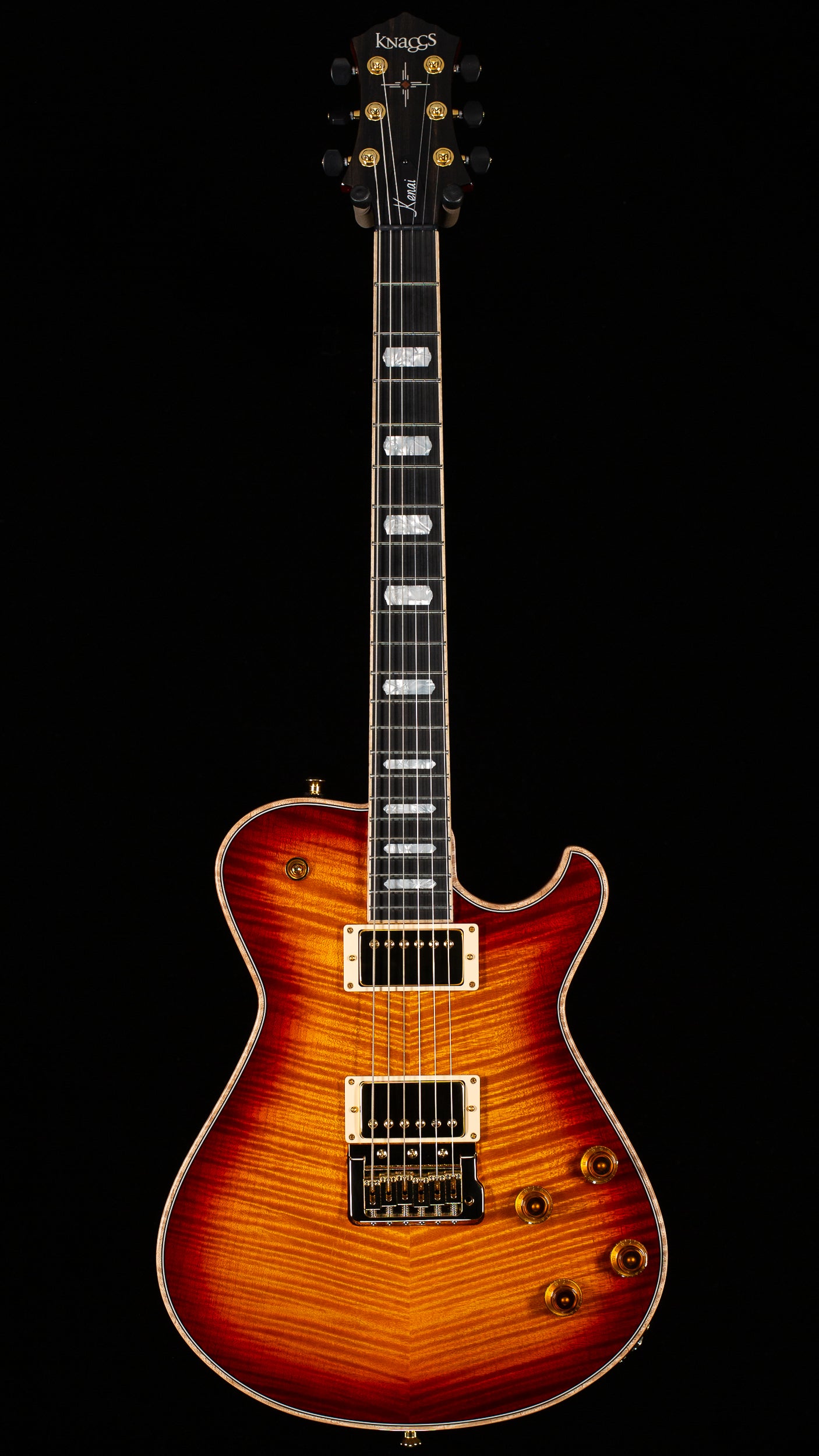 Combining the specifications of Joe Knaggs’ original Kenai Design, with his Knaggs Chesapeake Trem Bridge. The result is a beautiful, well voiced, 24.75” Scale, Carved Top, Trem Equipped Guitar, providing the resonance and articulation only a Knaggs Guitar and Knaggs Trem can offer.