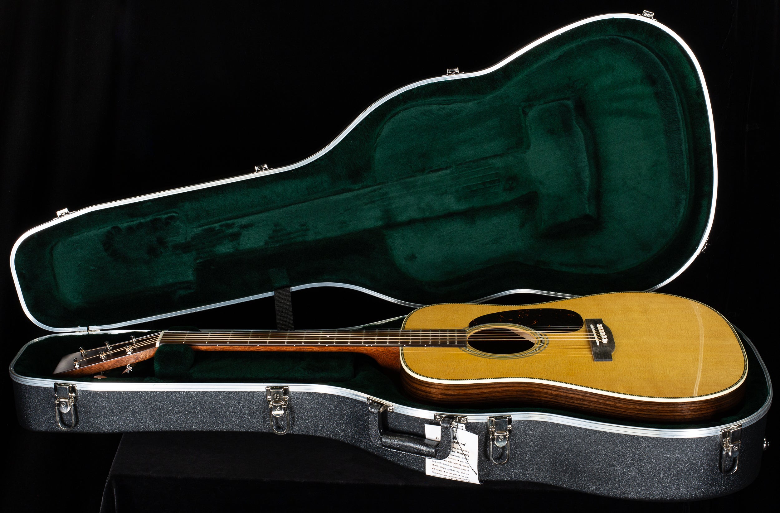The Martin HD-28E is a legendary acoustic guitar, trusted by generations of players and played by countless icons across genres. Its Dreadnought body size and scalloped bracing delivers the bold, projective tone with strong bass, clear trebles, and rich overtones that has defined acoustic music for nearly a century. Handcrafted with a solid spruce top and solid East Indian rosewood back and sides, the HD-28E offers a resonant, balanced voice for all playing styles. Bold herringbone top inlay and an ebony fingerboard with abalone diamond and square inlays add a vintage-inspired touch. The satin neck, featuring a Golden Era (GE) Modified Low Oval profile, high-performance taper, and 25.4" scale length, ensures effortless playability. Complete with antique white binding, an ebony bridge with bone pins, and nickel open gear tuners, the HD-28E is a guitar you can trust to unleash the artist within.