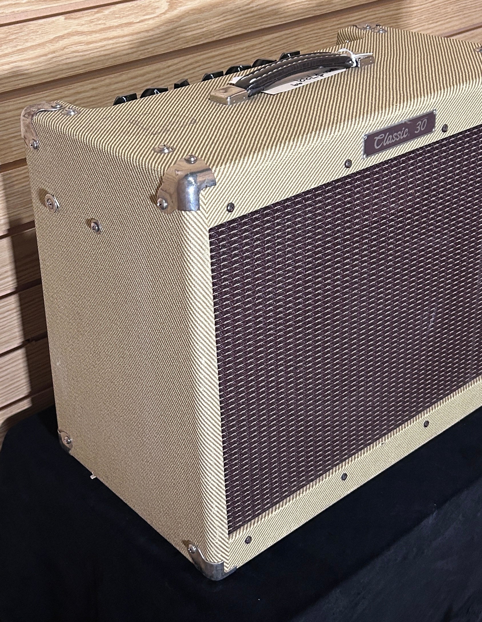 A reliable, gig-ready classic, the Peavey Classic 30 delivers warm EL84 tube tones, punchy cleans, and rich overdrive in a lightweight, vintage-styled tweed combo. Perfect for blues, rock, country, or worship settings, this USA-workhorse remains one of the best value tube amps ever made. This example is very good condition, showing some scuffs throughout but fully functional and sounding great.