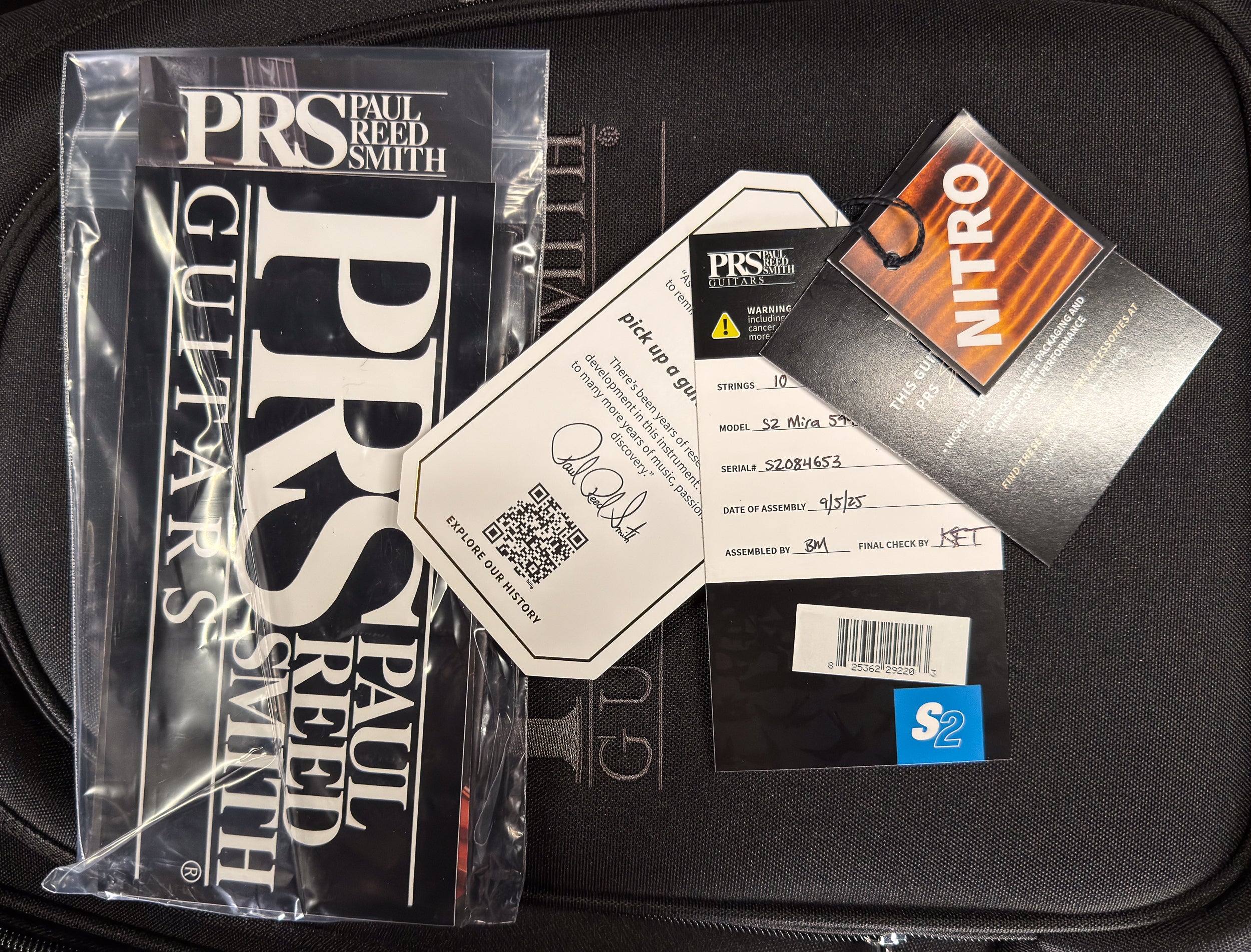 A true rock and roll guitar, the PRS S2 Mira 594 Satin is a great addition to any musician’s arsenal. The PRS S2 Mira 594 Satin features a bound 22-fret Pattern Thin neck with a 24.594” scale length. Its “sinky” satin nitro finish makes for an instantly comfortable neck and brings a naturally cool, stripped-down look. The PRS stoptail bridge with brass inserts and PRS Phase III tuners with brass shafts anchor this guitar, promoting resonance and open tone while ensuring tuning stability.