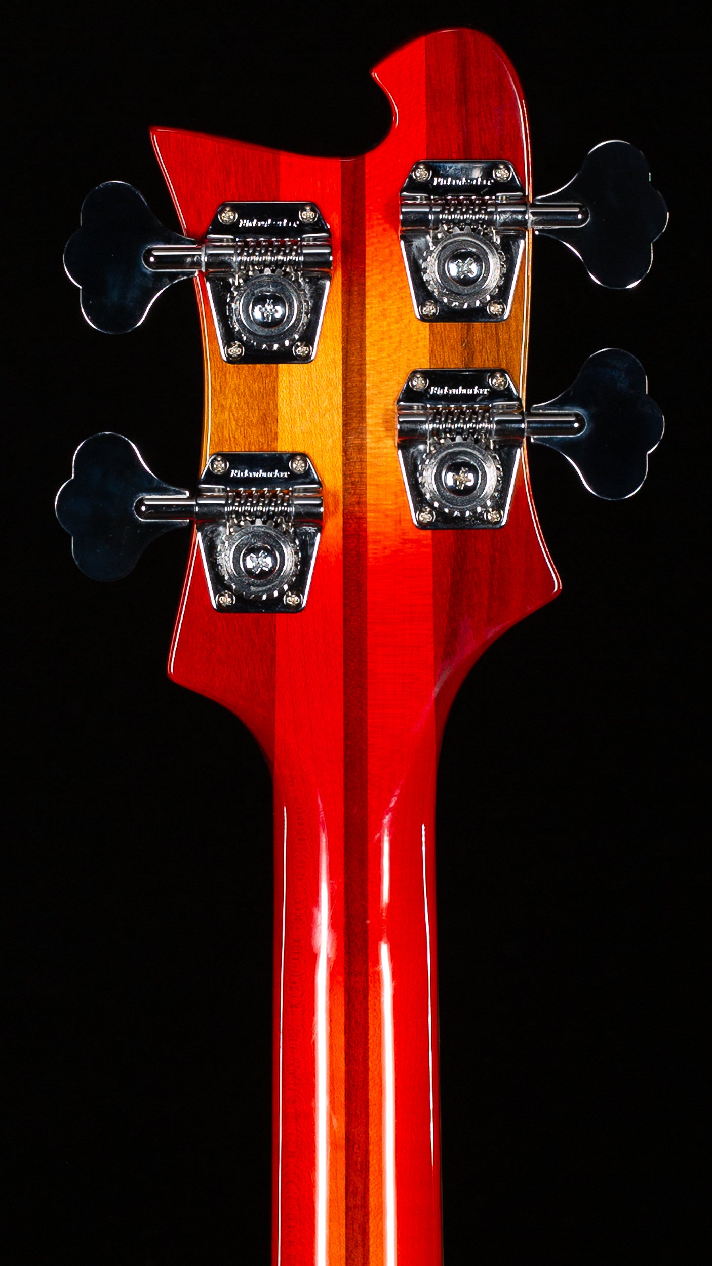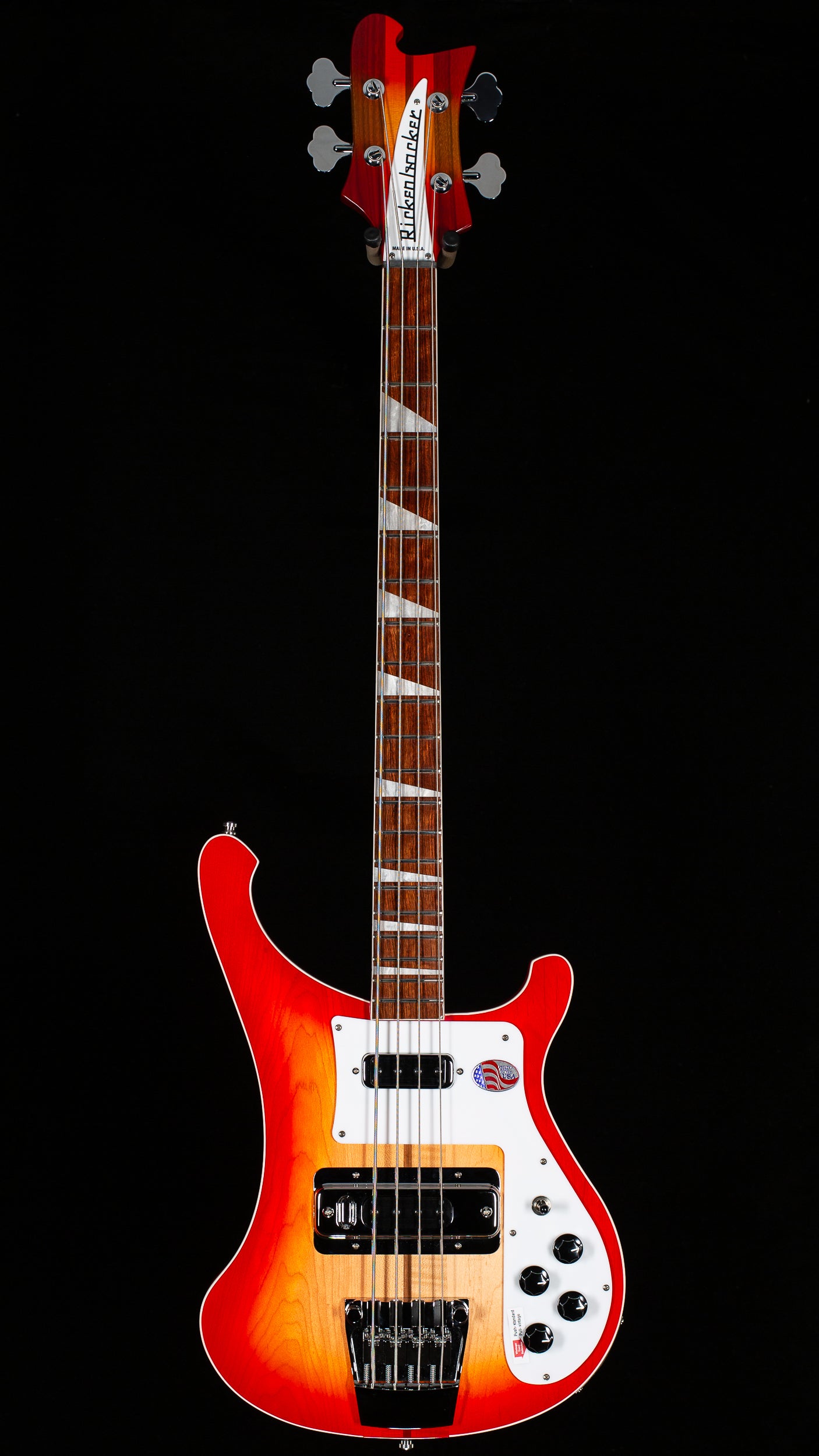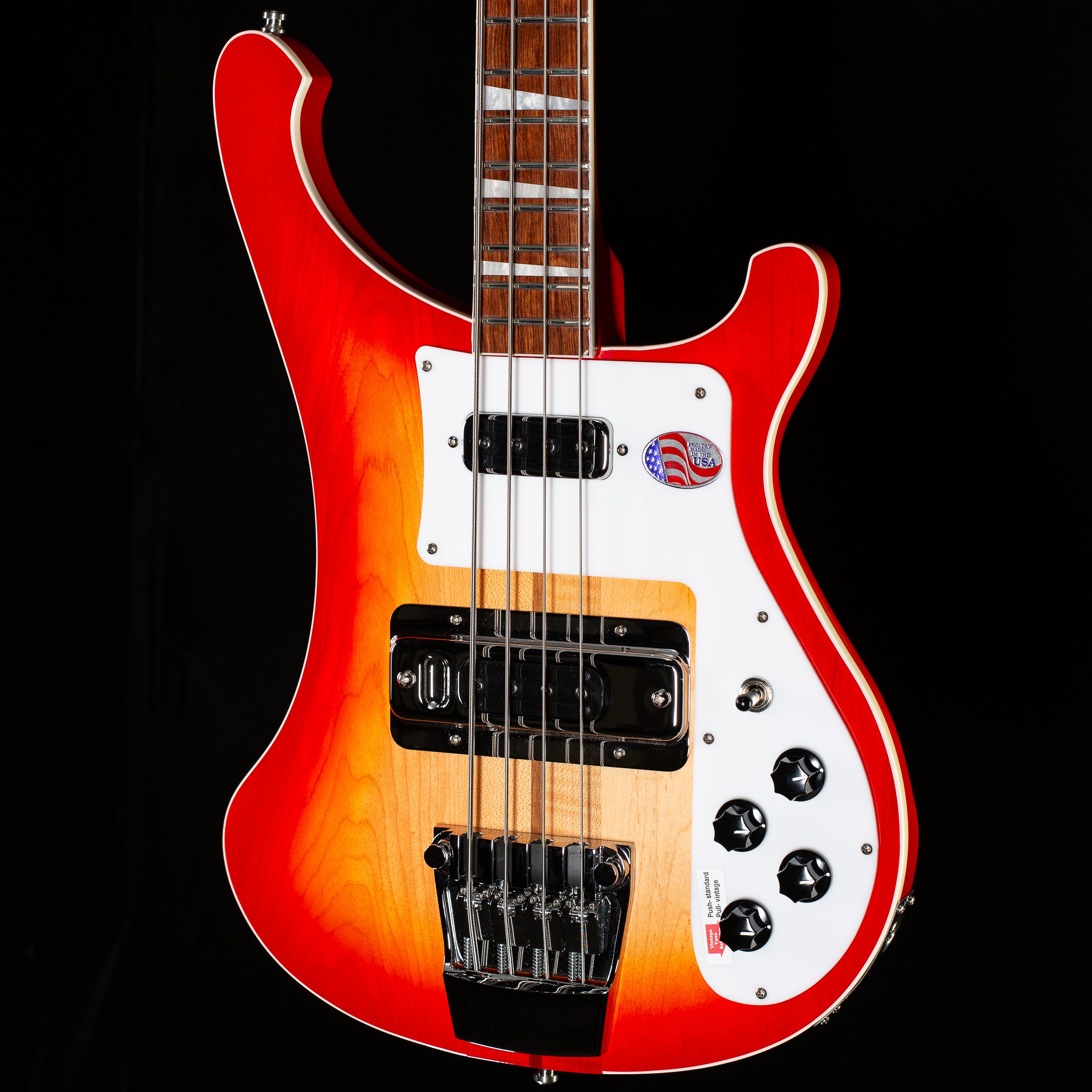 The Classic Rickenbacker bass - famous for its ringing sustain, treble punch and solid underlying bass. A subtle strip of binding graces the elegantly curved body and the Rosewood fingerboard. Deluxe triangular inlays and stereo capability are standard features.
