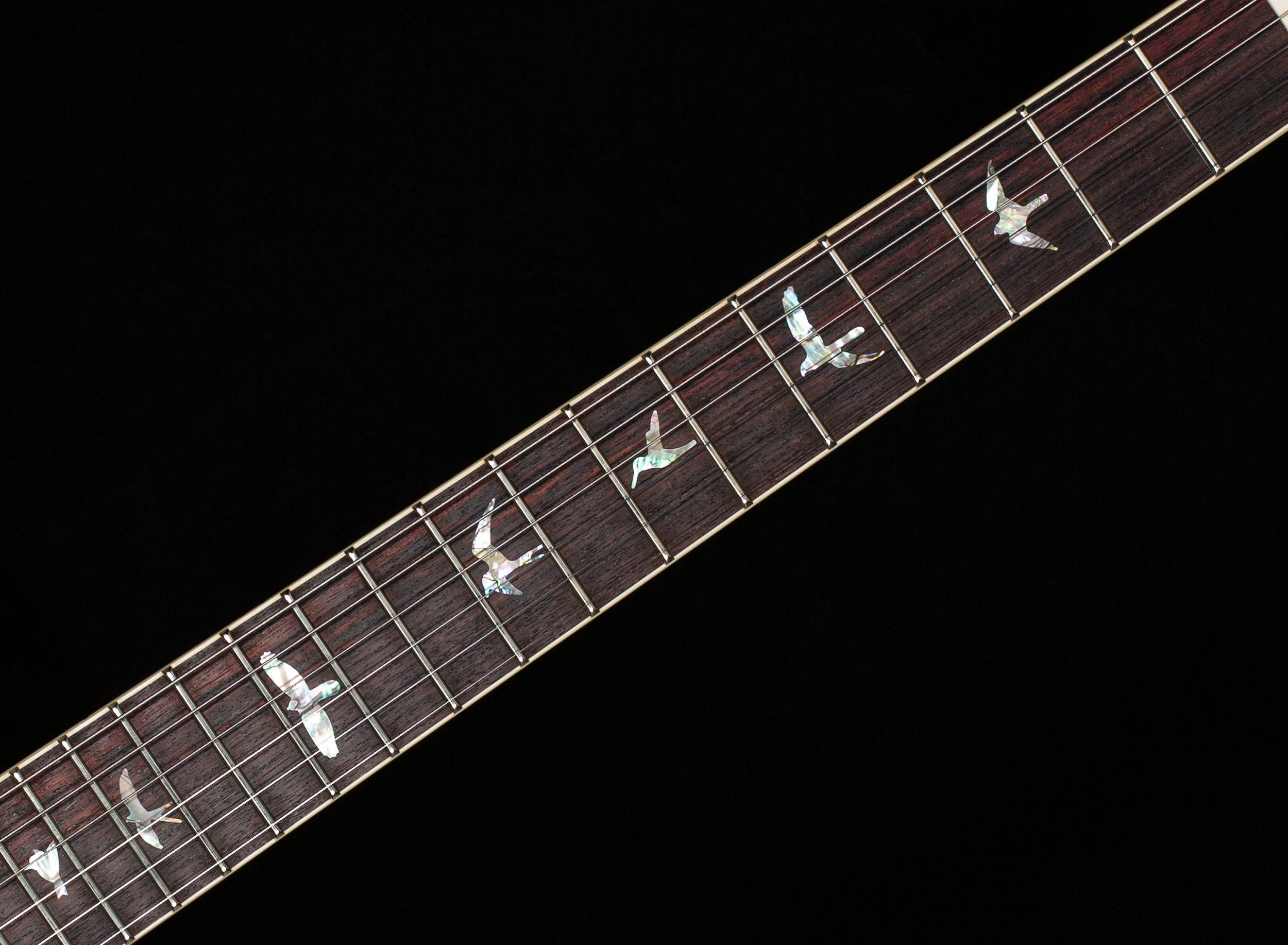 Fingerboard: Rosewood with faux bone binding | 10" radius | Bird inlays