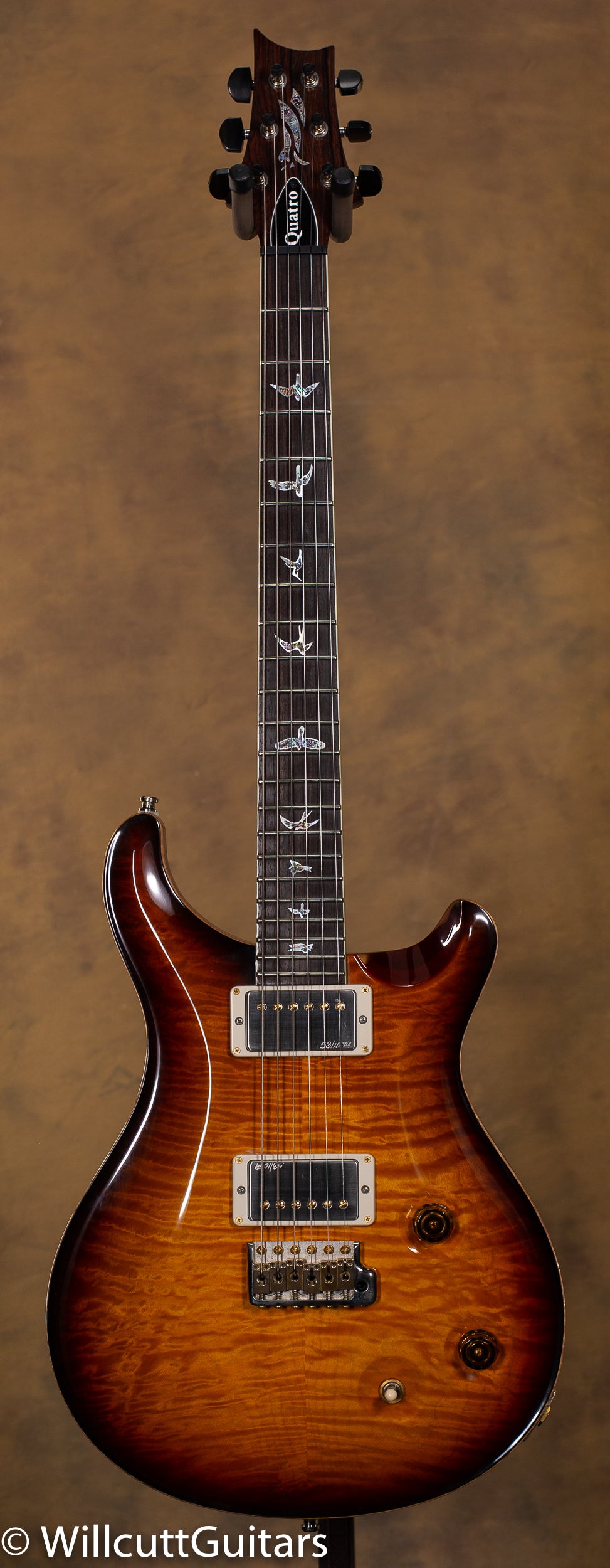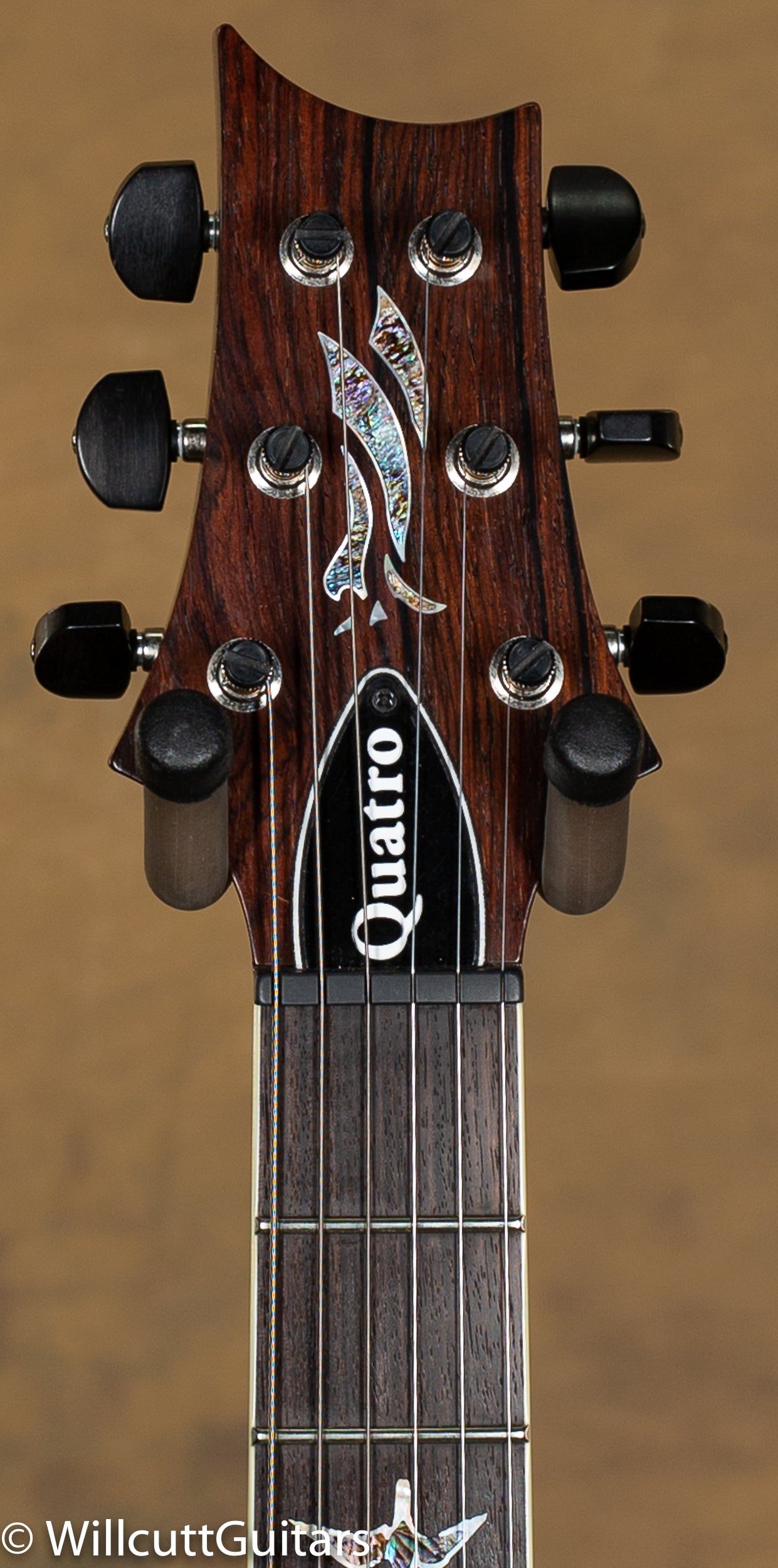 The PRS Modern Eagle Quatro is a boutique-level evolution of the Modern Eagle series, built with select tonewoods and refined electronics for unparalleled tonal versatility. Featuring an Artist Grade carved maple top, bound rosewood neck, and PRS 53/10 pickups with coil-split capability, this instrument delivers rich harmonic complexity and dynamic response. Its V12 finish ensures long-lasting beauty while allowing the wood to breathe, enhancing resonance. In excellent condition with minor play wear, this Quatro is a prime example of PRS craftsmanship at its highest level.