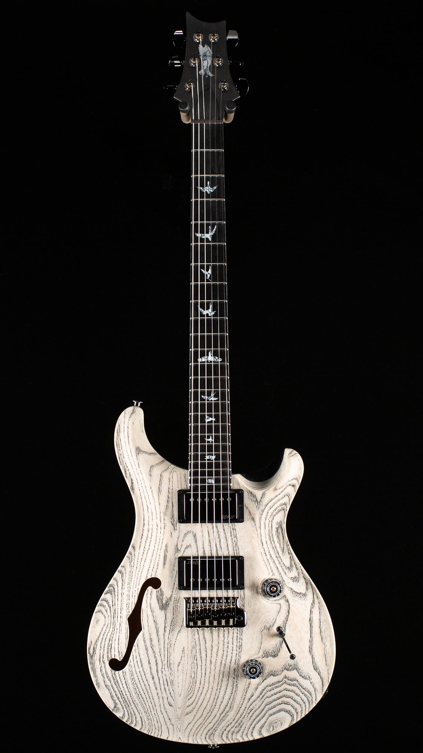 Private Stock #11733 is a stunning one-off Custom 24 built with some of the most unique tonewoods and aesthetic details the PRS Vault has to offer. The centerpiece is its White Doghair–finished Ash Top, an ultra-rare look that highlights the grain in dramatic fashion. A Swamp Ash back, Mahogany neck, and Gaboon Ebony fingerboard create a lively and articulate tonal platform with exceptional clarity and snap.