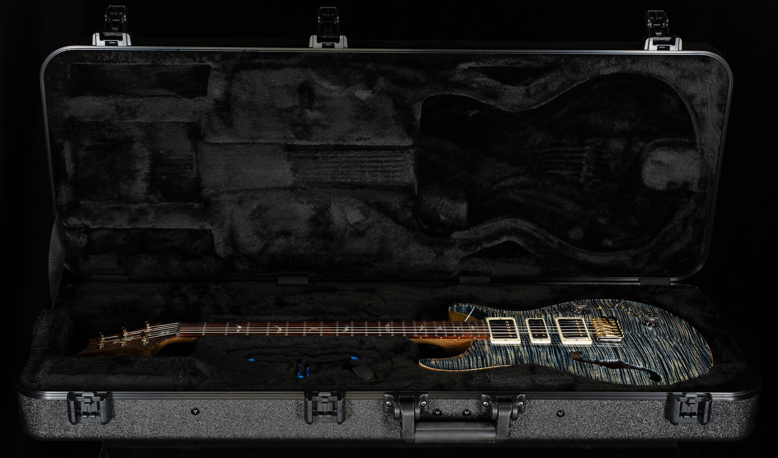 The 40th Anniversary Special Semi-Hollow Limited Edition marries PRS innovation with distinct wood appointments to bring players an incredible amount of versatility in a unique package. Limited to just 280 pieces worldwide, this special edition features PRS’s McCarty III treble and bass pickups with a proprietary PRS Narrowfield in the center position along with an artist grade figured maple top, black limba back and neck, and Honduran rosewood fretboard and headstock veneer.