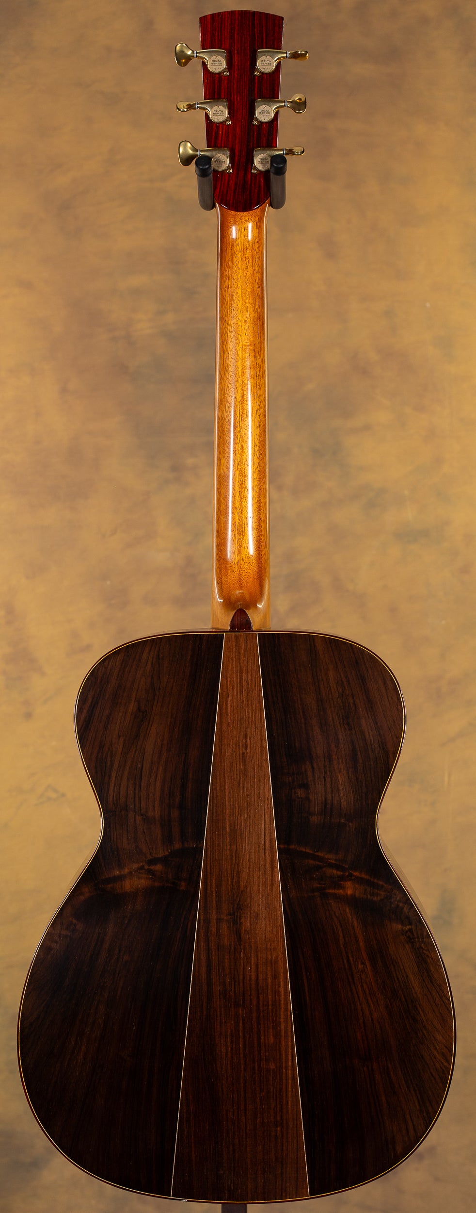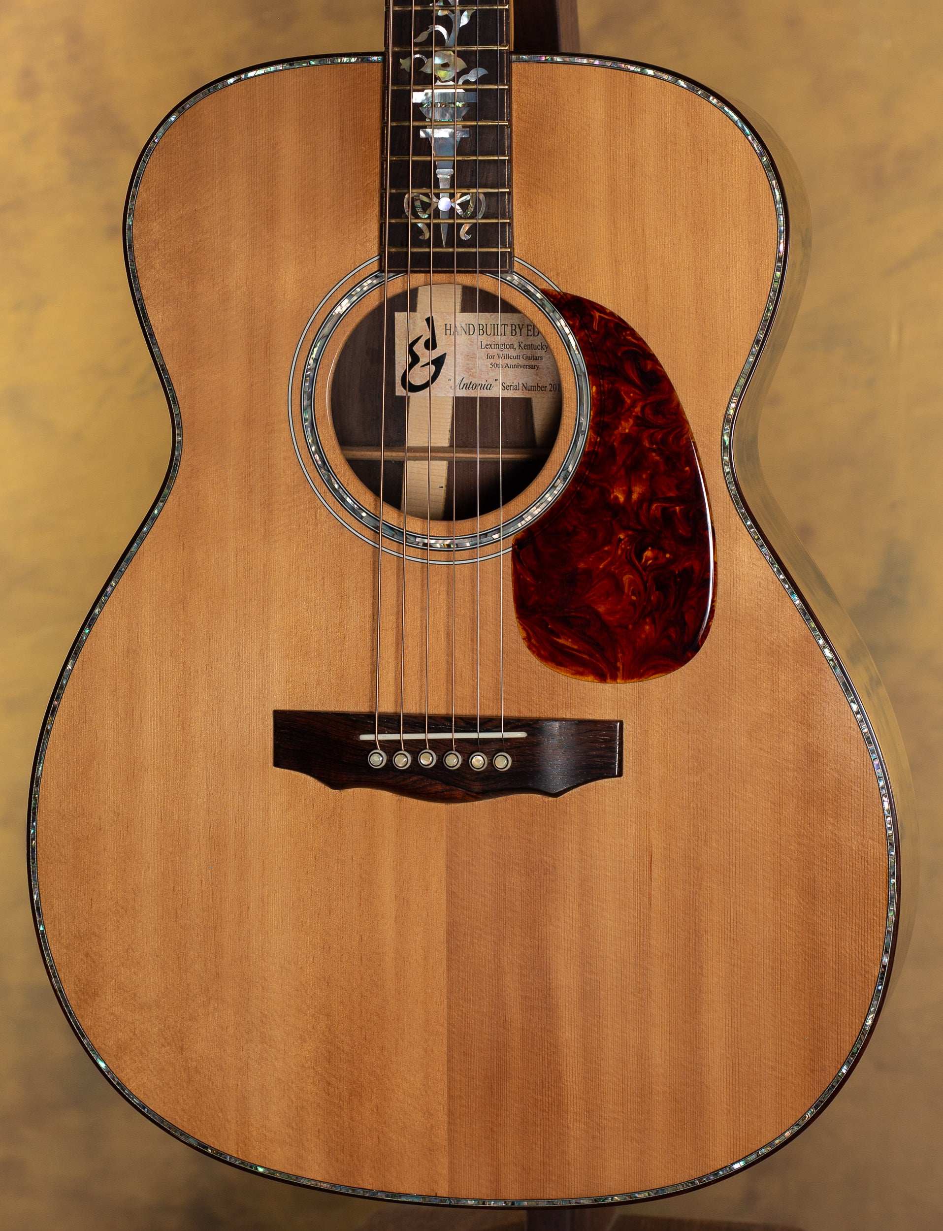 The types of instruments that Gerber has made often evolved in parallel to his son’s interests, going from electrics to archtops to electric basses and then on to the Brazilian instruments used in samba and choro - cavaquinho, bandolim and classical guitars, including a seven string classical which can be heard on the recording “Historia do Choro” by Rogerio Souza, Edinho Gerber and Ami Molinelli. For steel string acoustics, Ed has concentrated on parlor and OM sized guitars and his latest efforts are three OM acoustics made for Willcutt Guitars, utilizing Brazilian rosewood and spruce harvested well over fifty years ago.