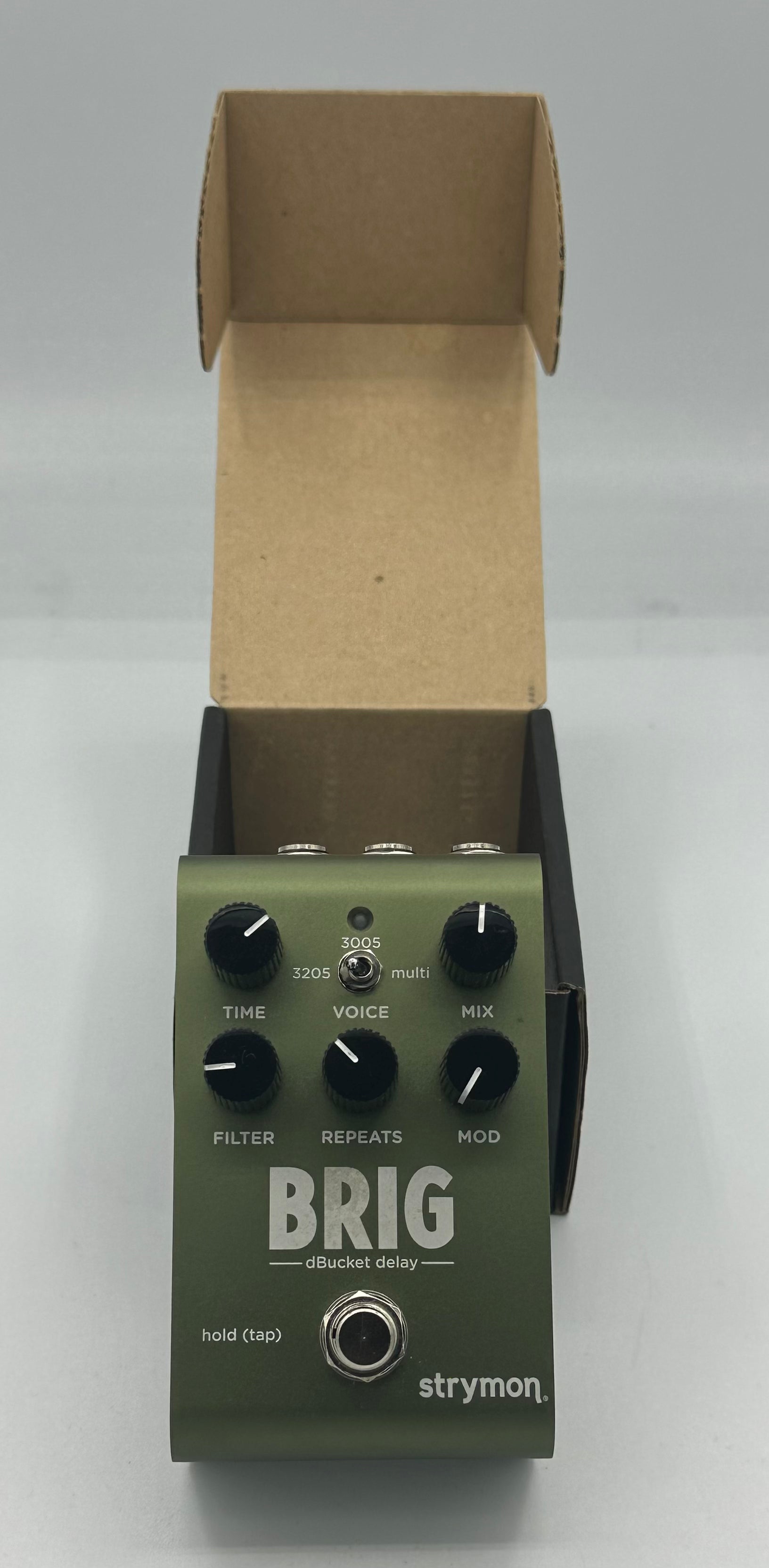 This used Strymon Brig dBucket Delay is in excellent condition and functions flawlessly. Designed to capture the character of classic bucket-brigade delays with modern performance and reliability, the Brig delivers warm, organic repeats, beautifully modulated textures, and everything from subtle slapback to deep, swirling ambient echoes.