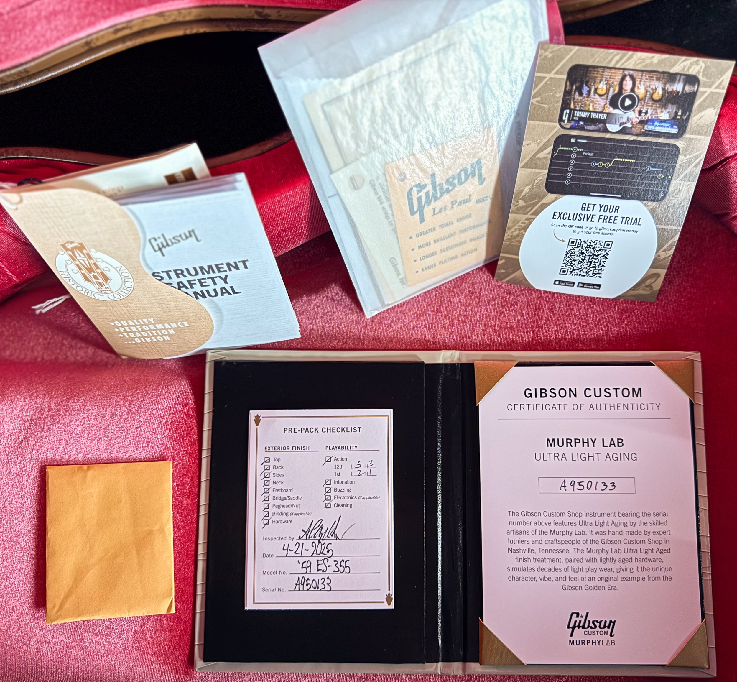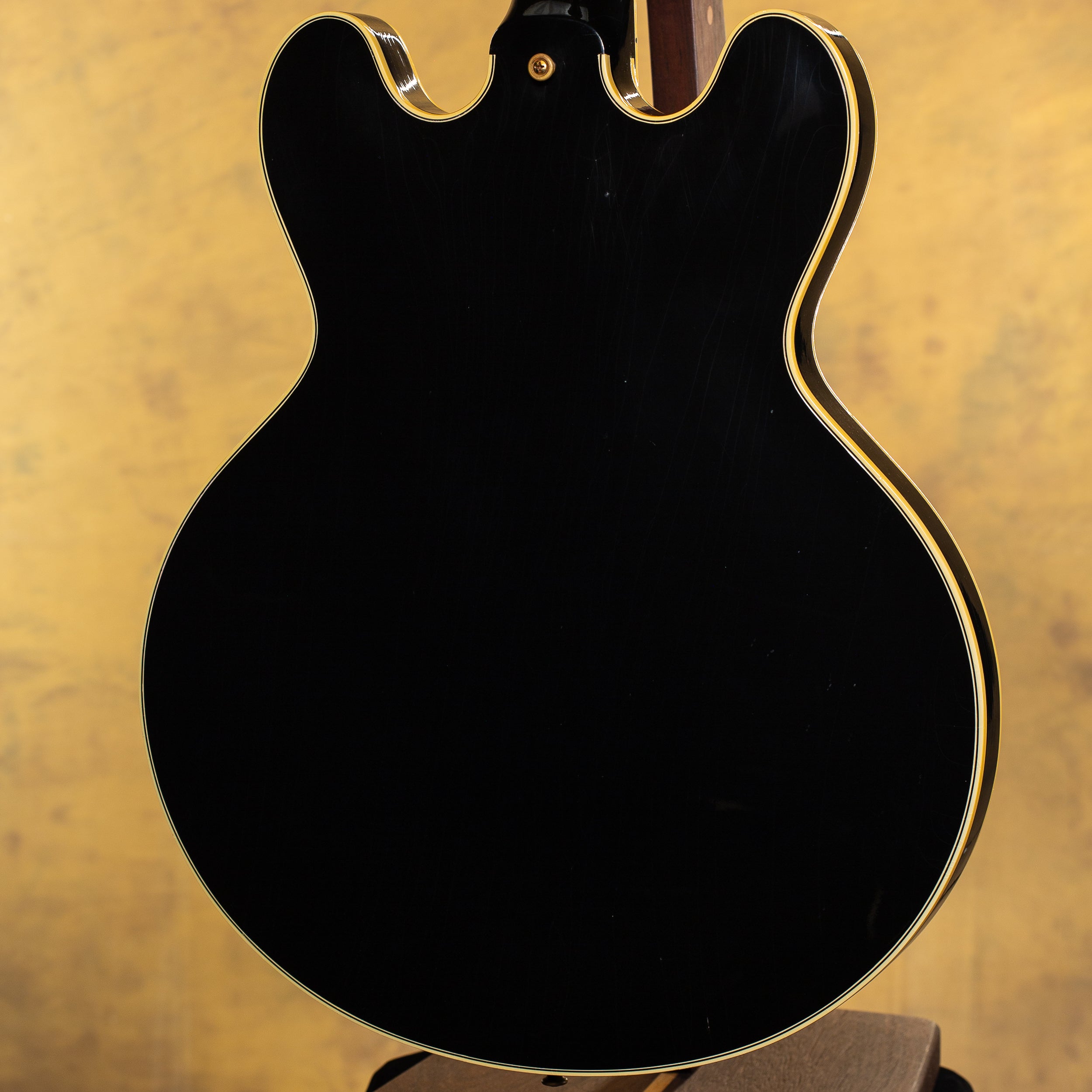 A 2025 Gibson Custom Shop 1959 ES-355 Reissue Stop Bar Murphy Lab Ultra Light Aged in Ebony — a stunning recreation of one of Gibson’s most elegant semi-hollow designs. Finished in Murphy Lab Ultra Light Aged Ebony with multi-ply binding and gold hardware, this ’59-spec ES-355 delivers rich, articulate semi-hollow tone paired with Custombucker Alnico III pickups for authentic vintage response and clarity. A refined, premium example of Gibson Custom craftsmanship.