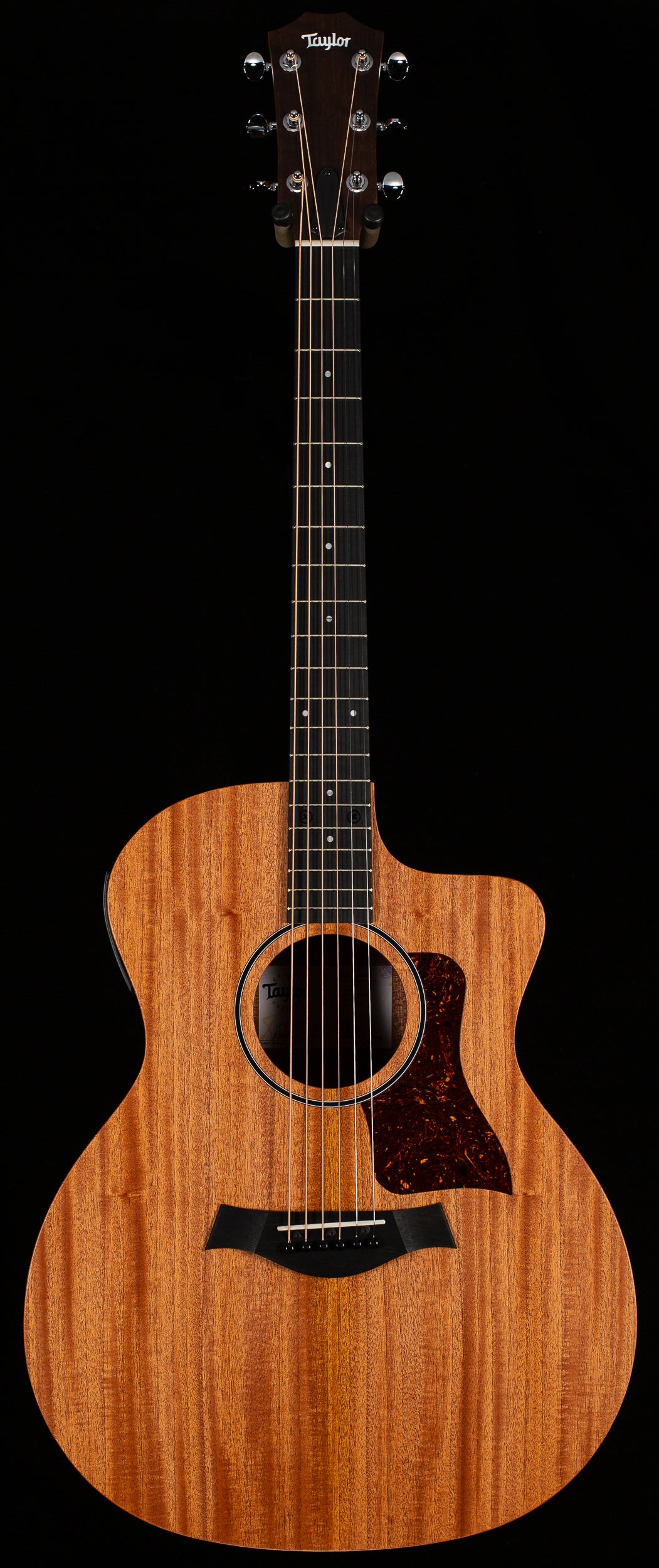 Blending warm, lively acoustic character with signature Taylor playability, the 24ce brings our full-size, full-scale cutaway Grand Auditorium experience to an accessible entry-level price point. A solid mahogany top delivers a warm, dry tonal profile with a strong focus on the midrange—perfect for players who enjoy a rootsy, earthy sound. Featuring layered sapele back and sides, the 24ce’s tonal balance makes it a dependable choice for strummers and fingerstyle players alike. Inside, Taylor's unique voicing architecture bolsters the overall volume and sustain, with greater harmonic agreement between notes along the entire ebony fretboard. A slim, heelless maple neck delivers the smooth, familiar feel Taylor players expect. Visually, the 24ce keeps things simple yet stylish with subtle 4mm dot inlays, a single-ring black rosette, chrome tuners and a faux-tortoiseshell pickguard. This model includes onboard Fishman Sonitone GT-2 electronics and ships in a gig bag so you can easily plug in and play wherever your music takes you.